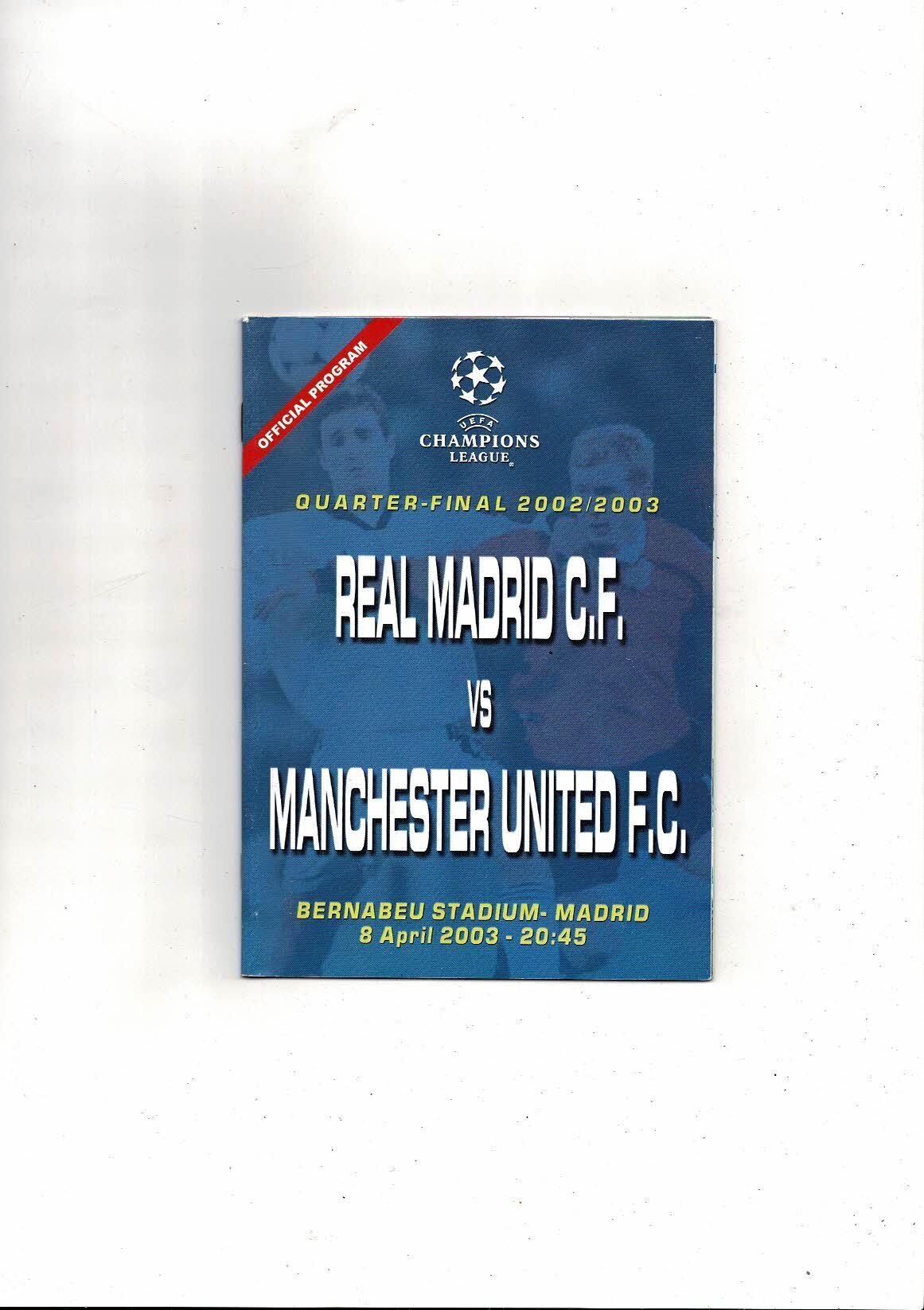 CF Real Madrid v Manchester United Champions League 1/4 Final Football Programme (English Version)