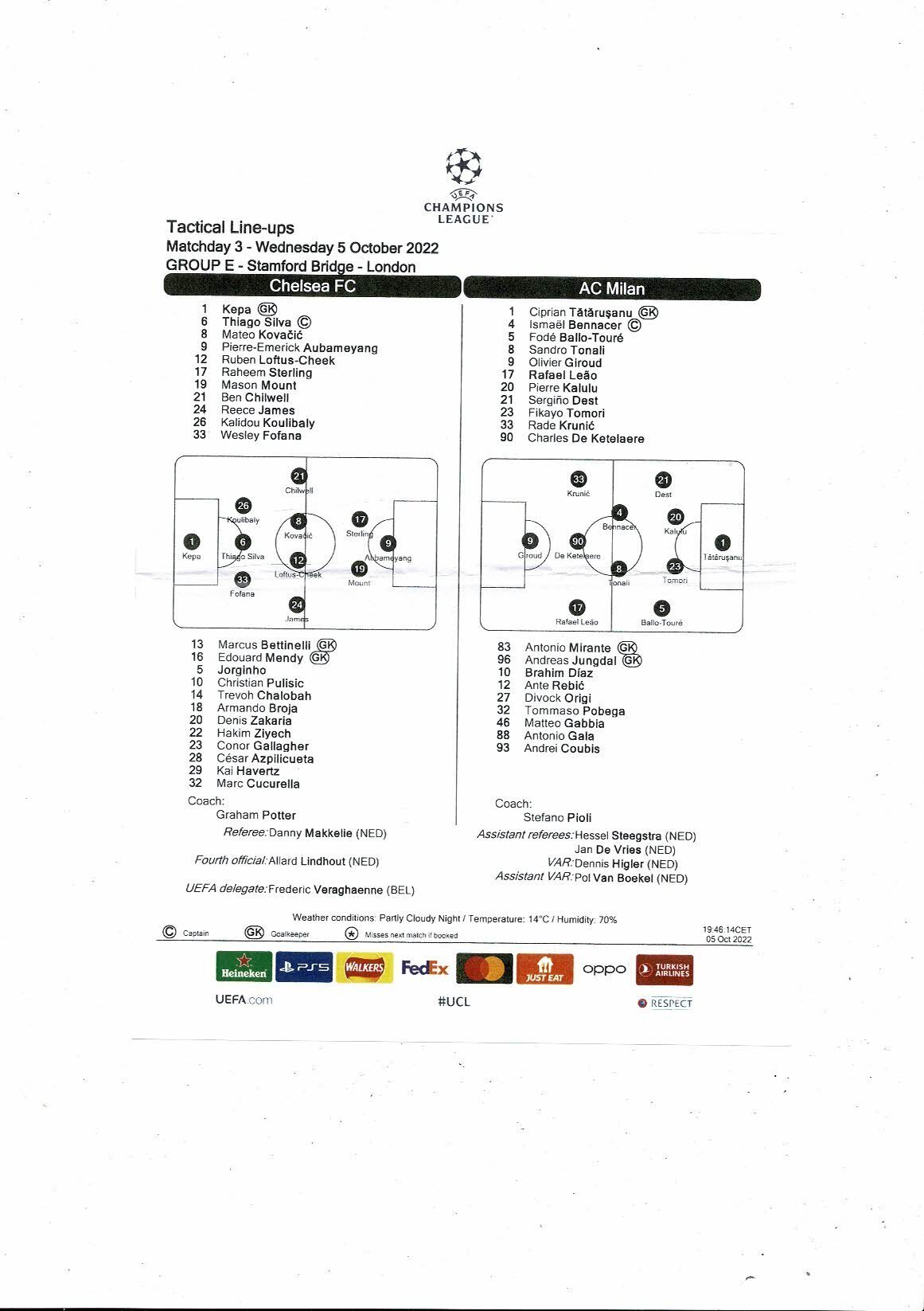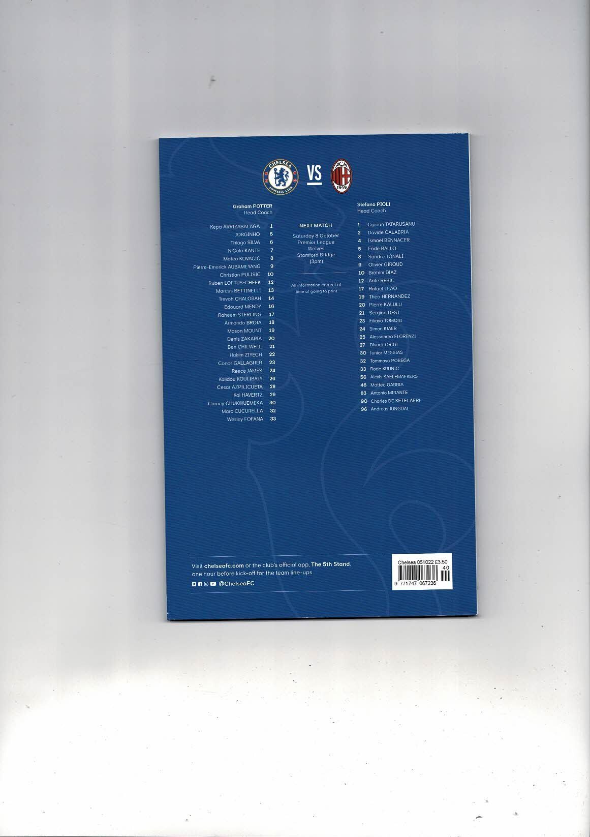 Chelsea v AC Milan Champions League Football Programme 2022/23