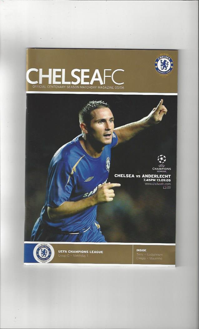 Chelsea v Anderlecht Champions League Football Programme 2005/06