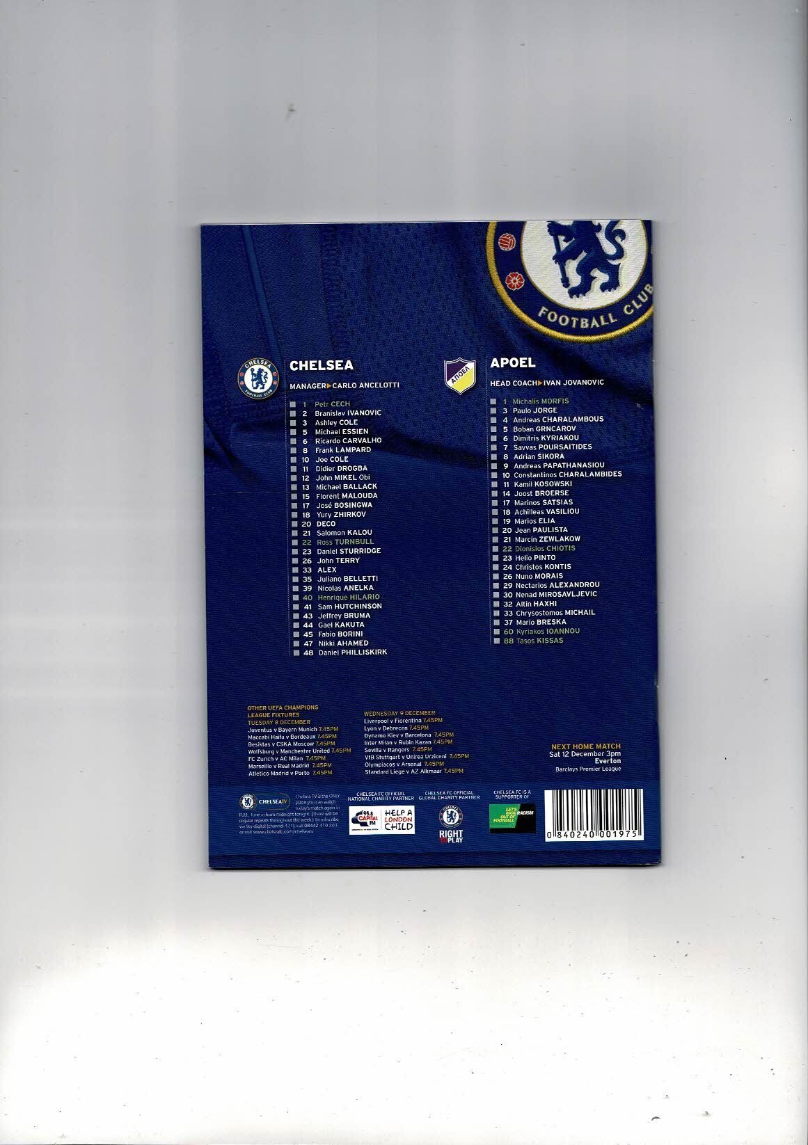 Chelsea v Apoel Champions League Football Programme 2009/10