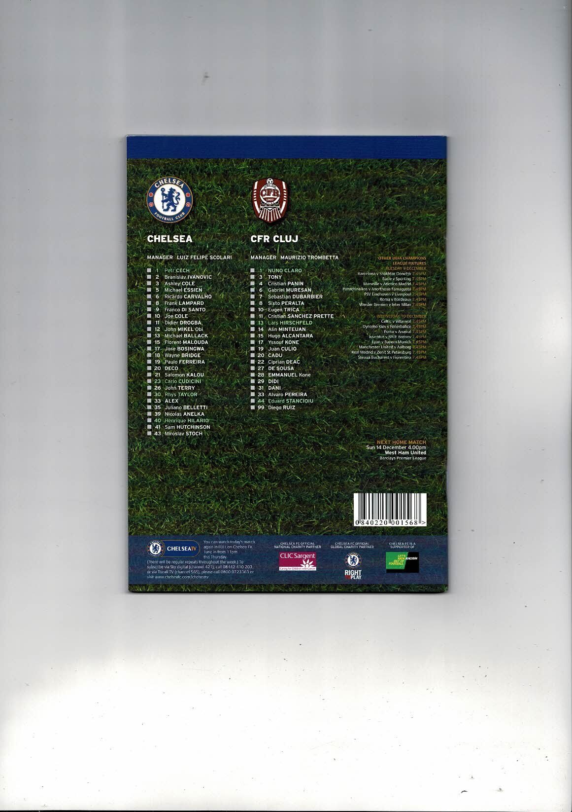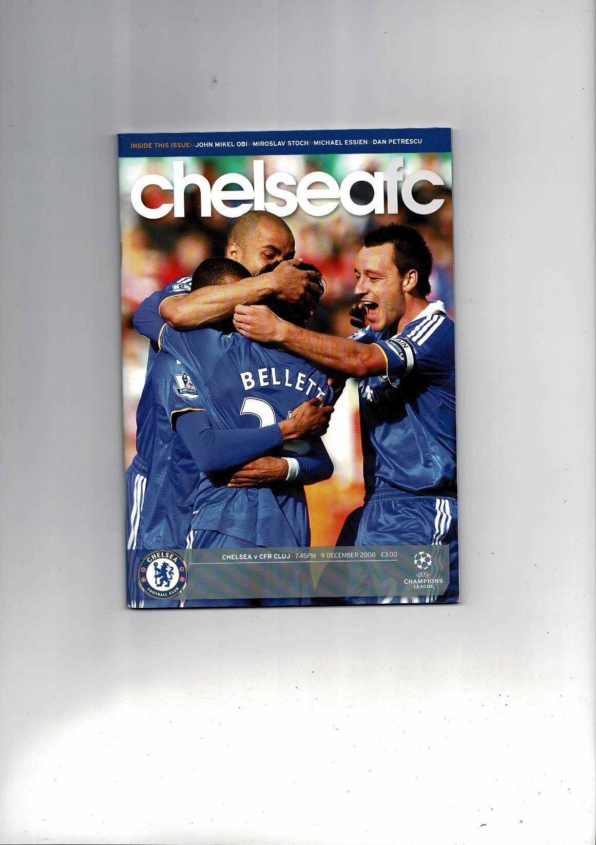Chelsea v CFR CLUJ Champions League Football Programme + Match Ticket 2008/09