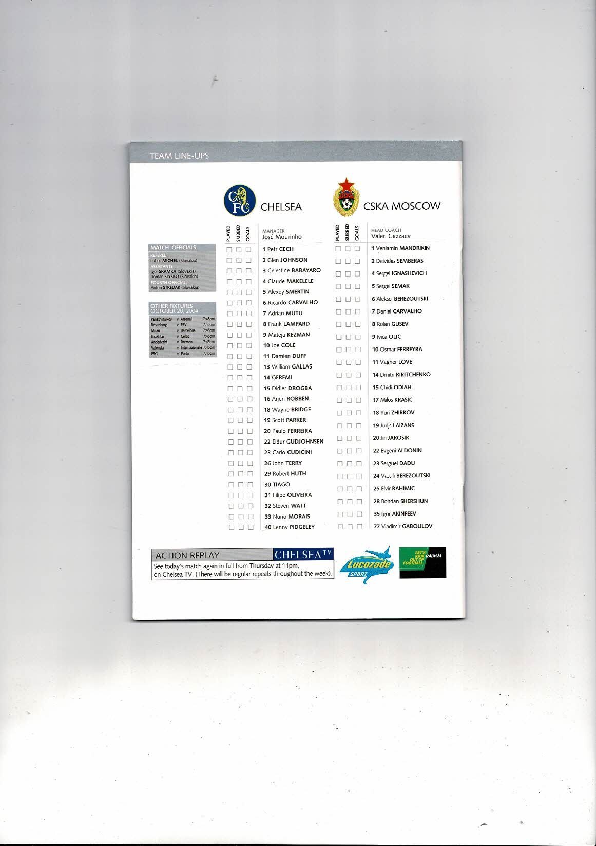 Chelsea v CSKA Moscow Champions League Football Programme 2004/05