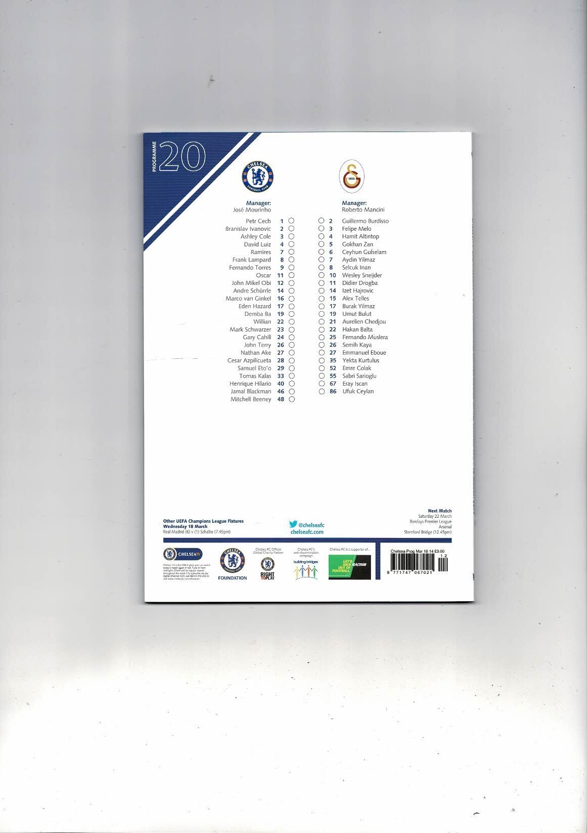 Chelsea v Galatasaray Champions League Football Programme 2013/14