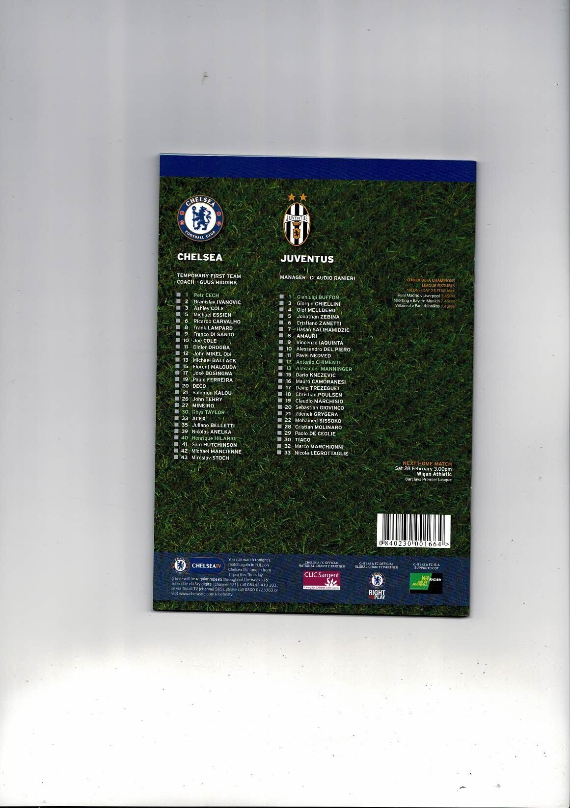 Chelsea v Juventus Champions League Football Programme 2008/09