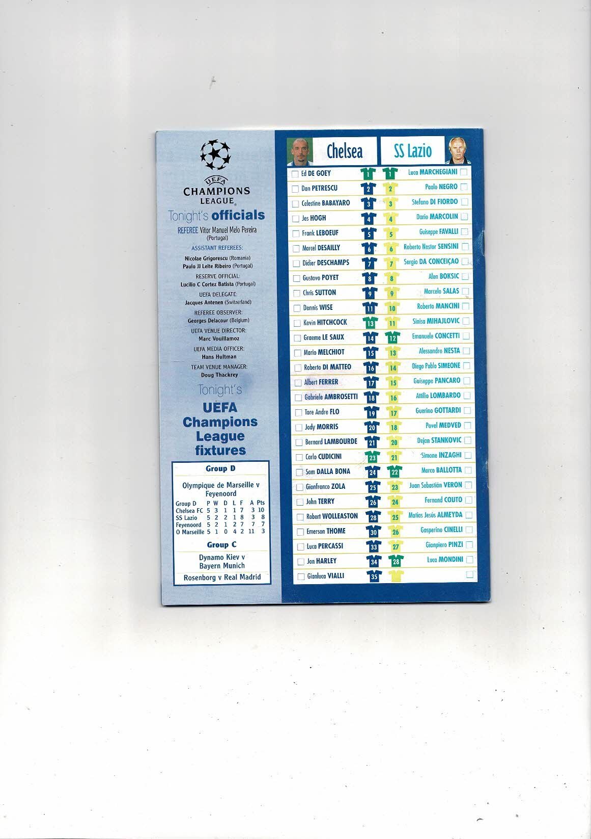Chelsea v Lazio Champions League Football Programme 1999/00