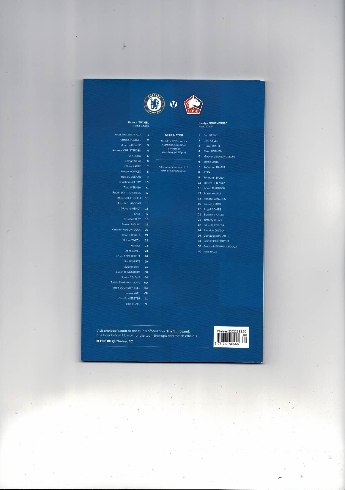 Chelsea v Lille Champions League Football Programme 2021/22