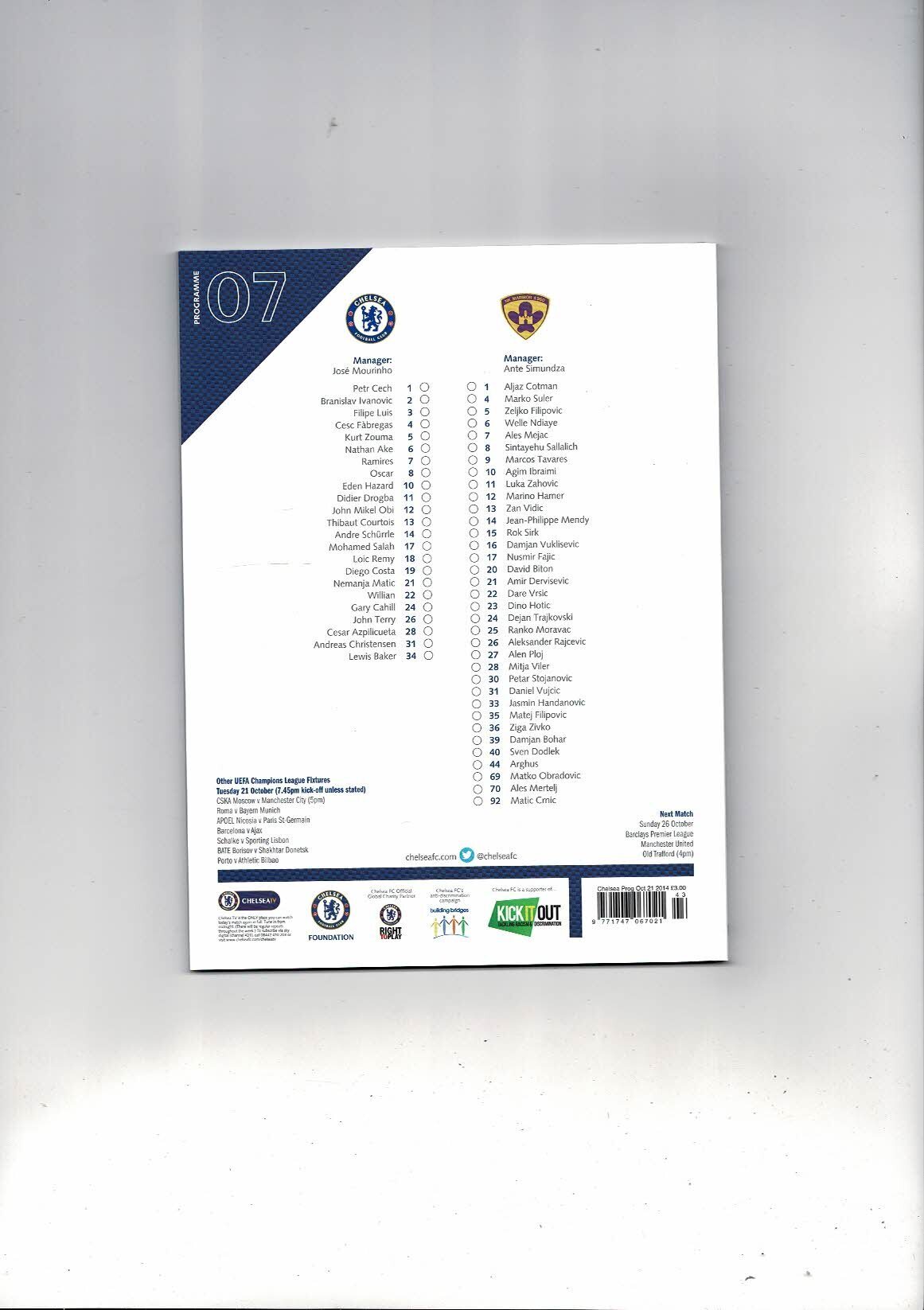 Chelsea v Maribor Champions League Football Programme 2014/15