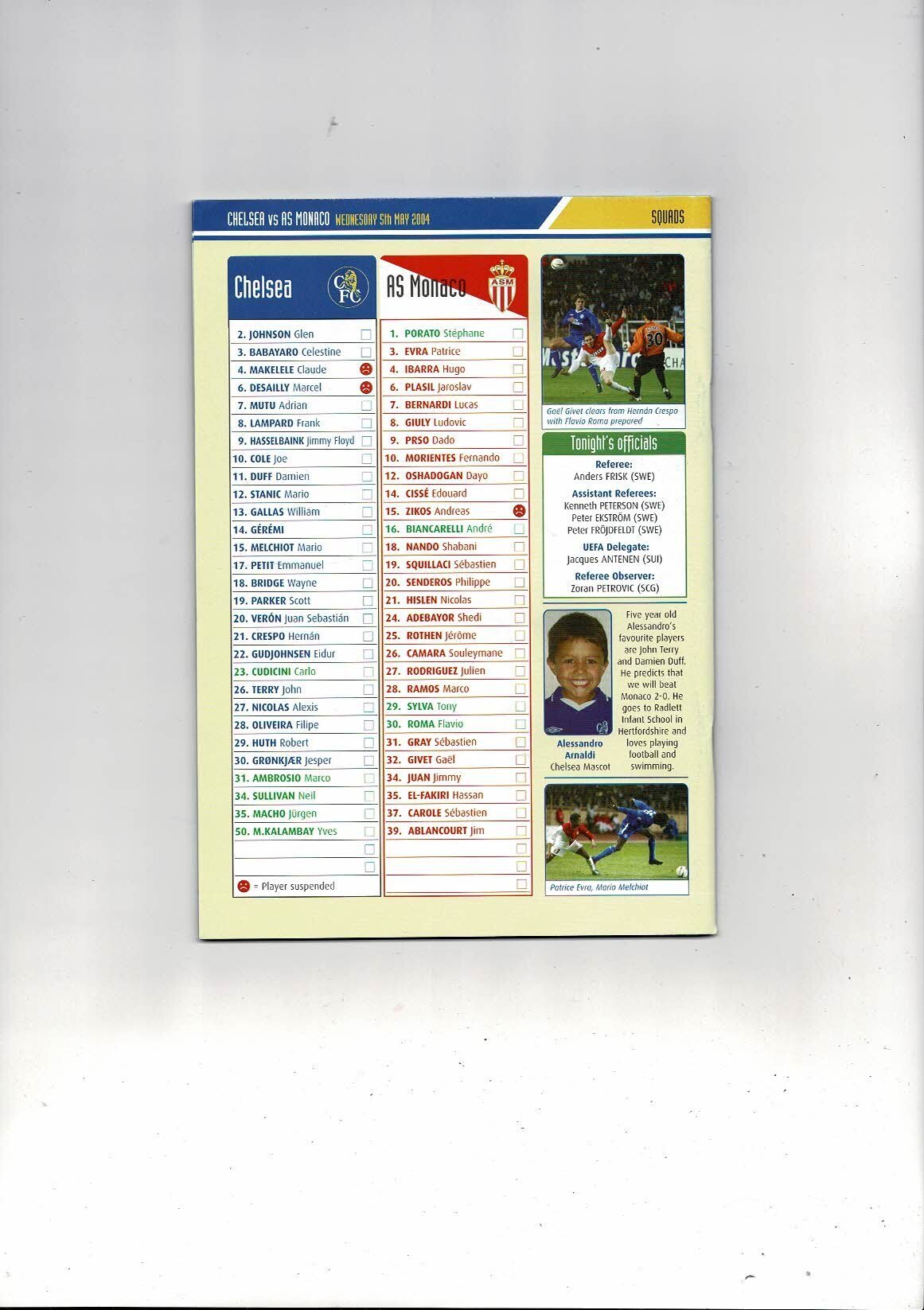 Chelsea v Monaco Champions League Football Programme 2003/04