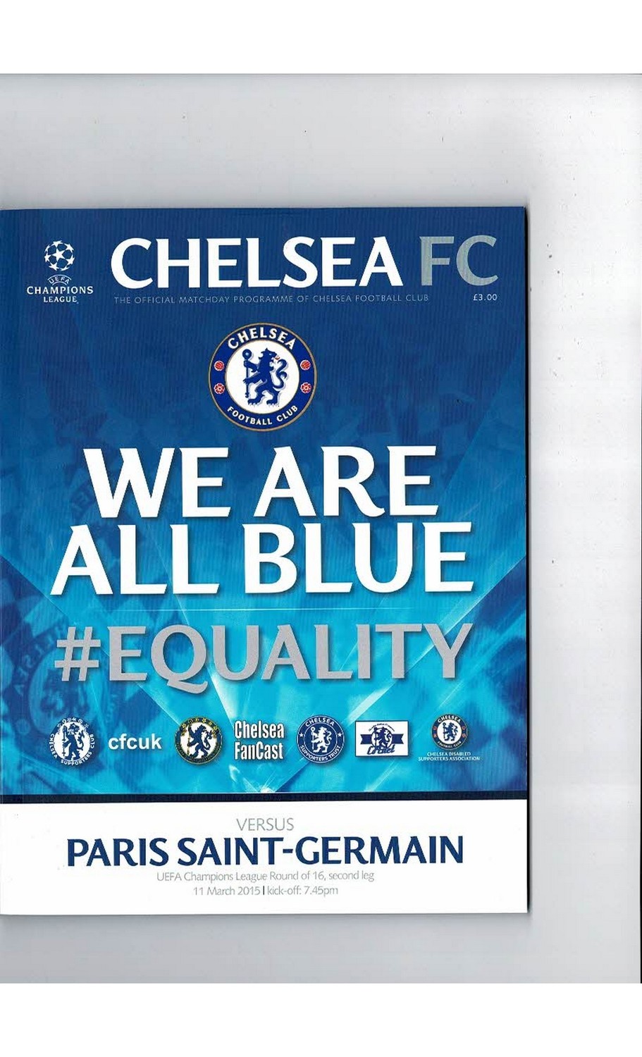 Chelsea v Paris St Germain Champions League Football Programme 2014/15