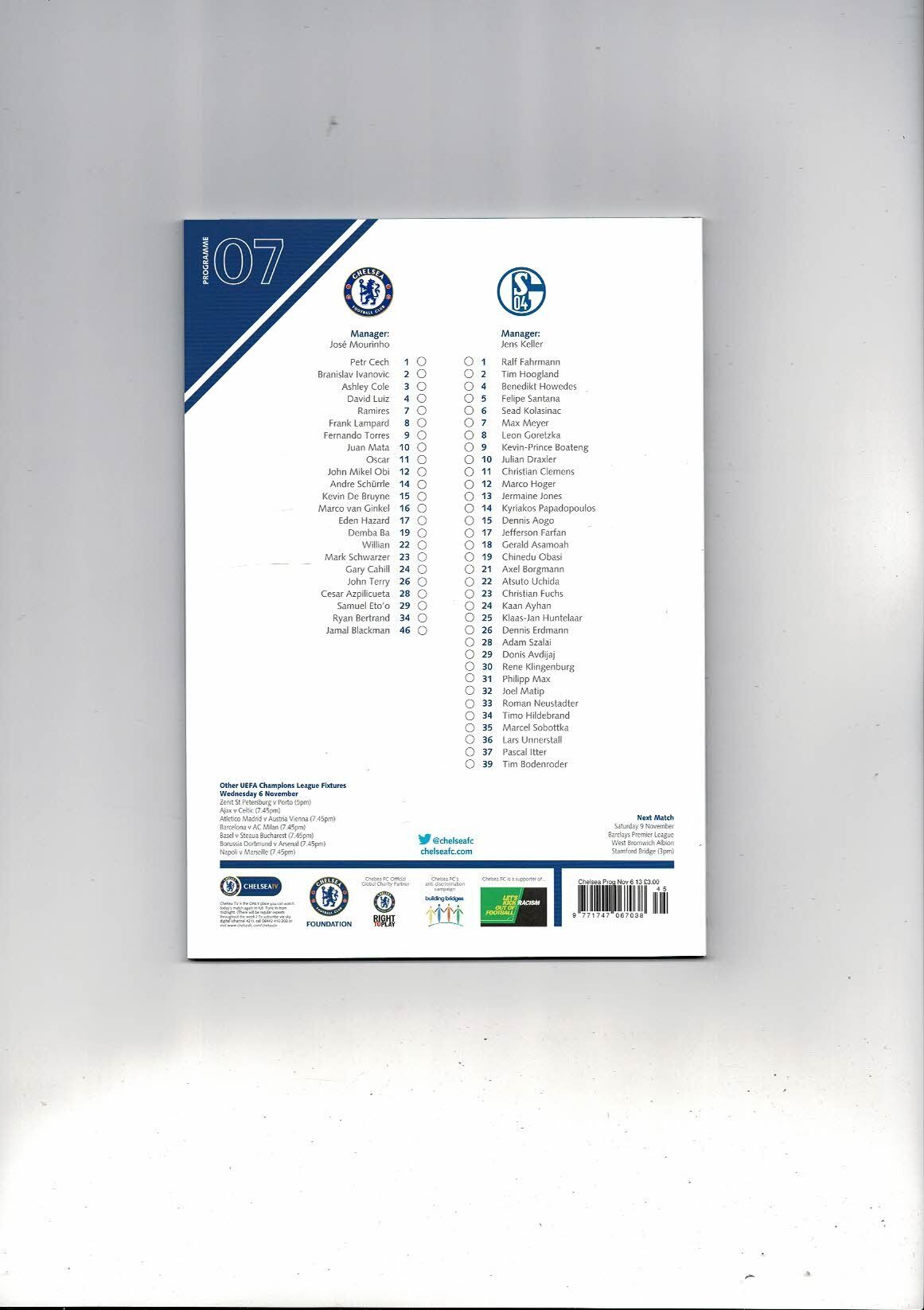 Chelsea v Schalke Champions League Football Programme 2013/14