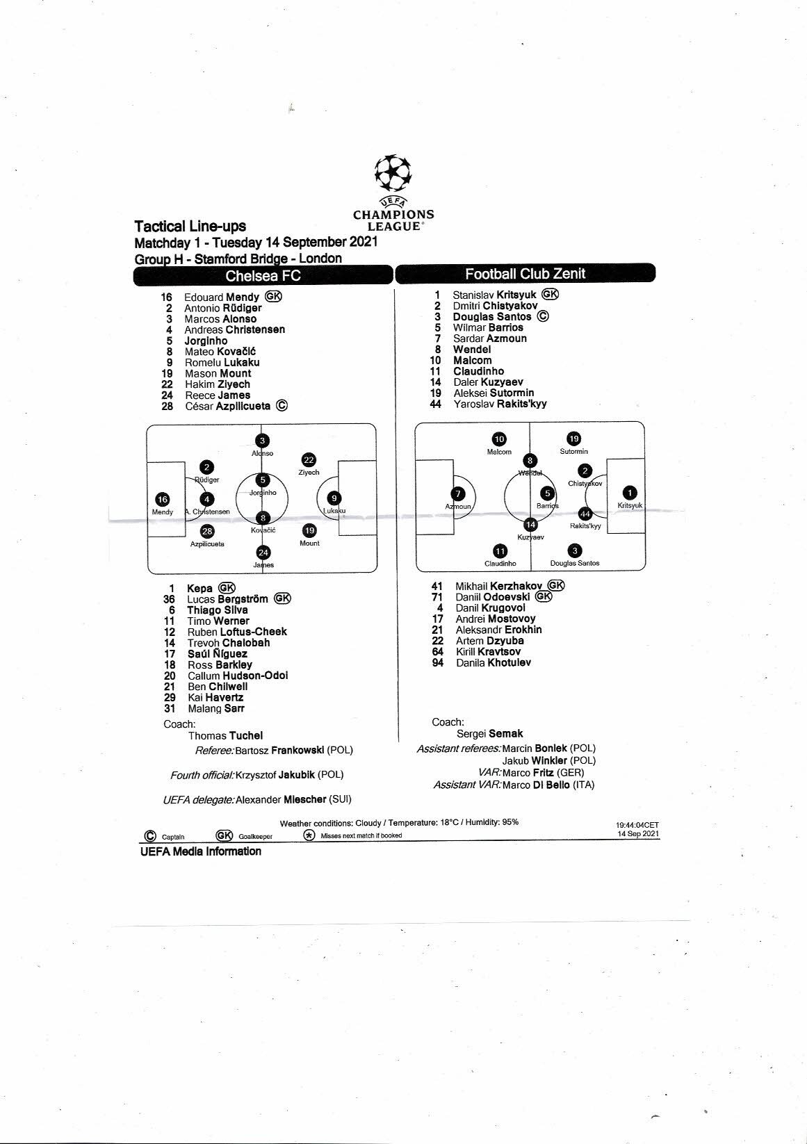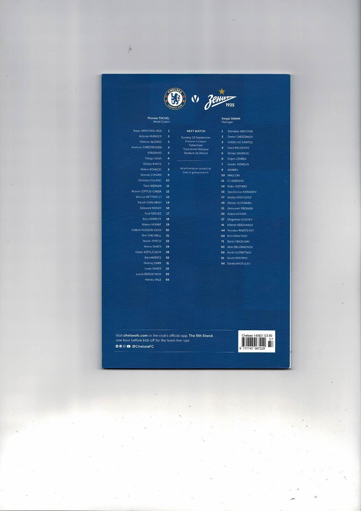 Chelsea v Zenit St Petersburg Champions League Football Programme 2021/22