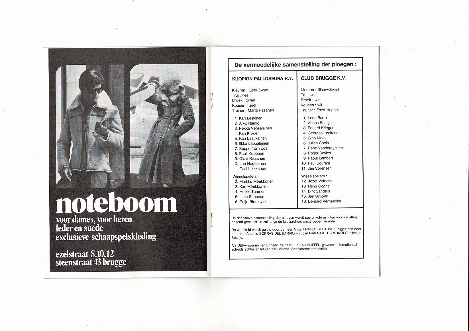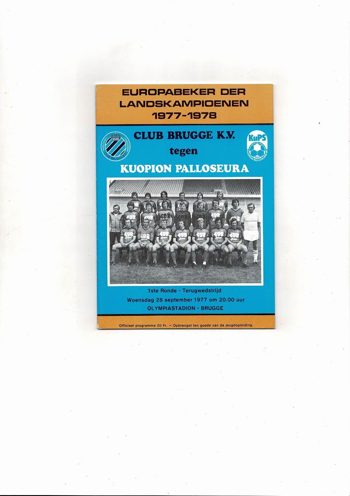 Club Brugge v Kuopion Palloseura European Cup Football Programme 1977/78