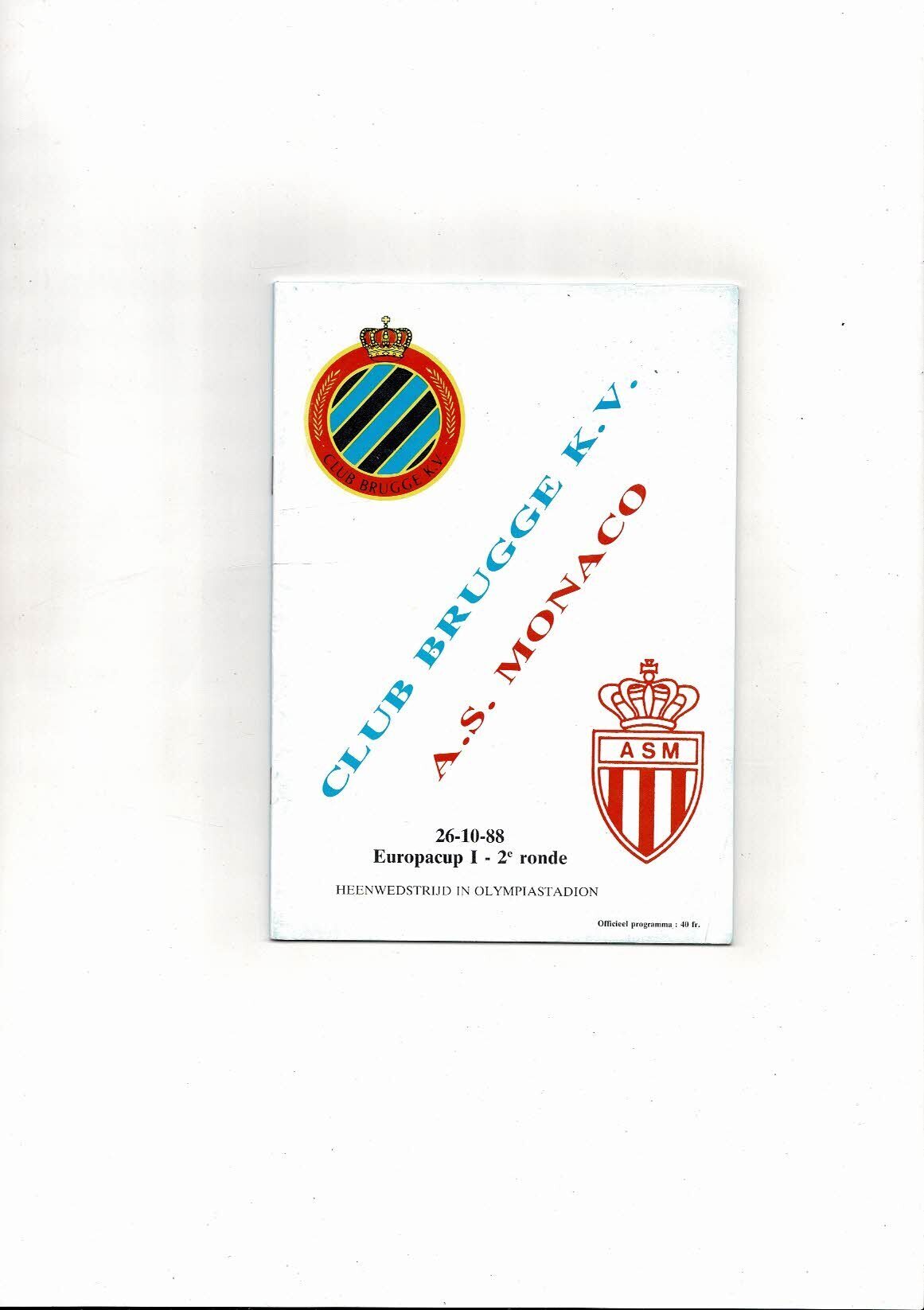 Club Brugge v Monaco European Cup Football Programme 1988/89