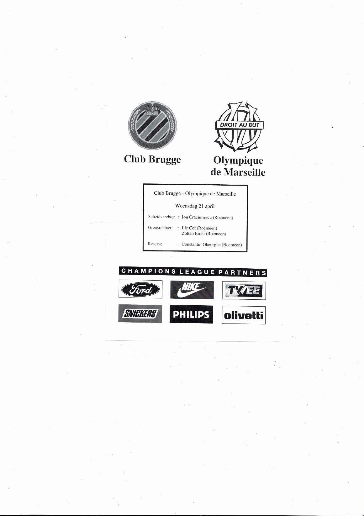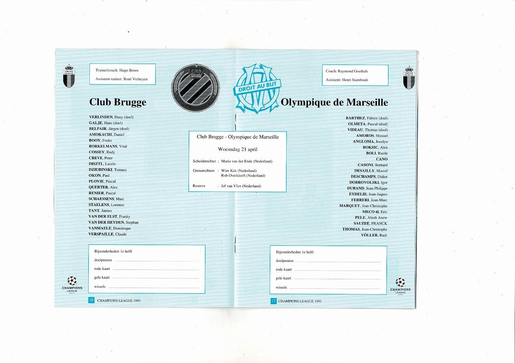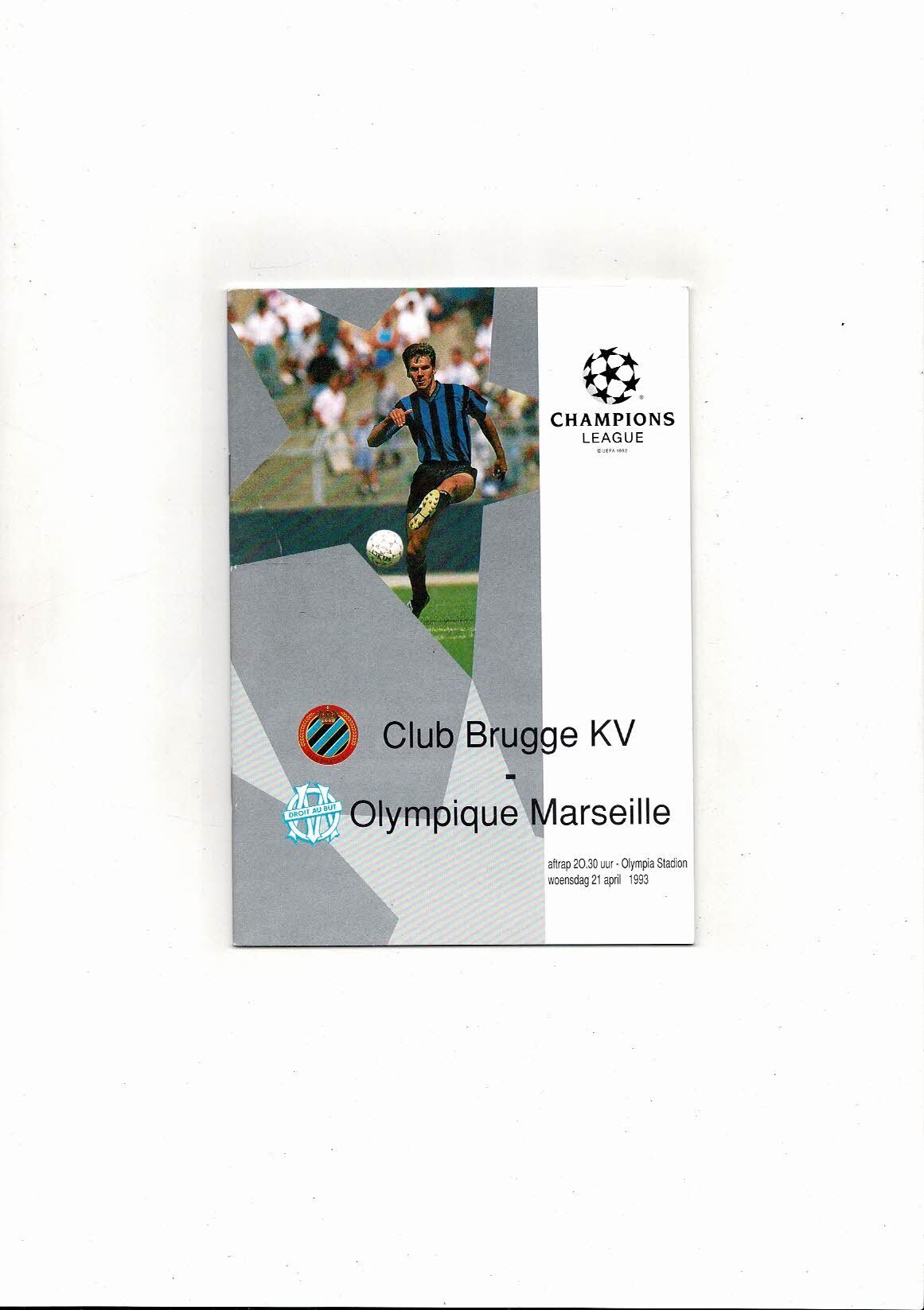 Club Brugge v Olympique Marseille UEFA Champions League Football Programme + insert 1992/93