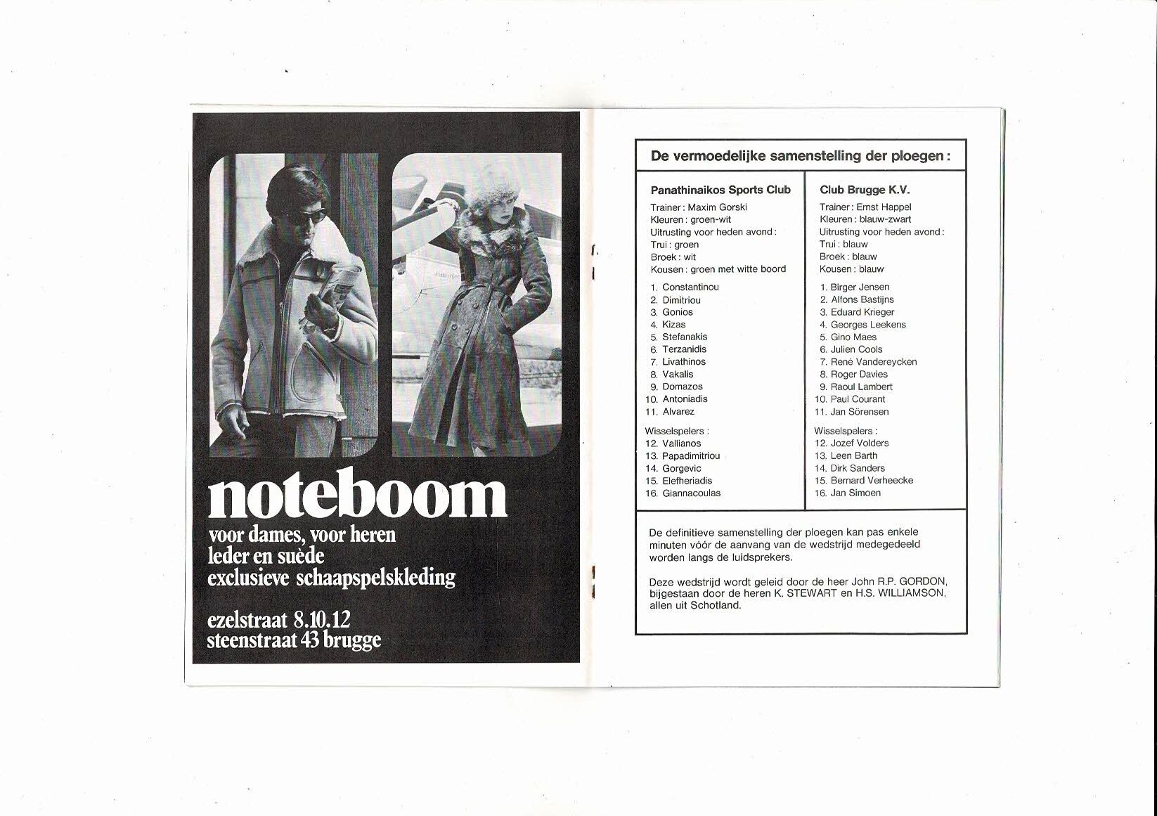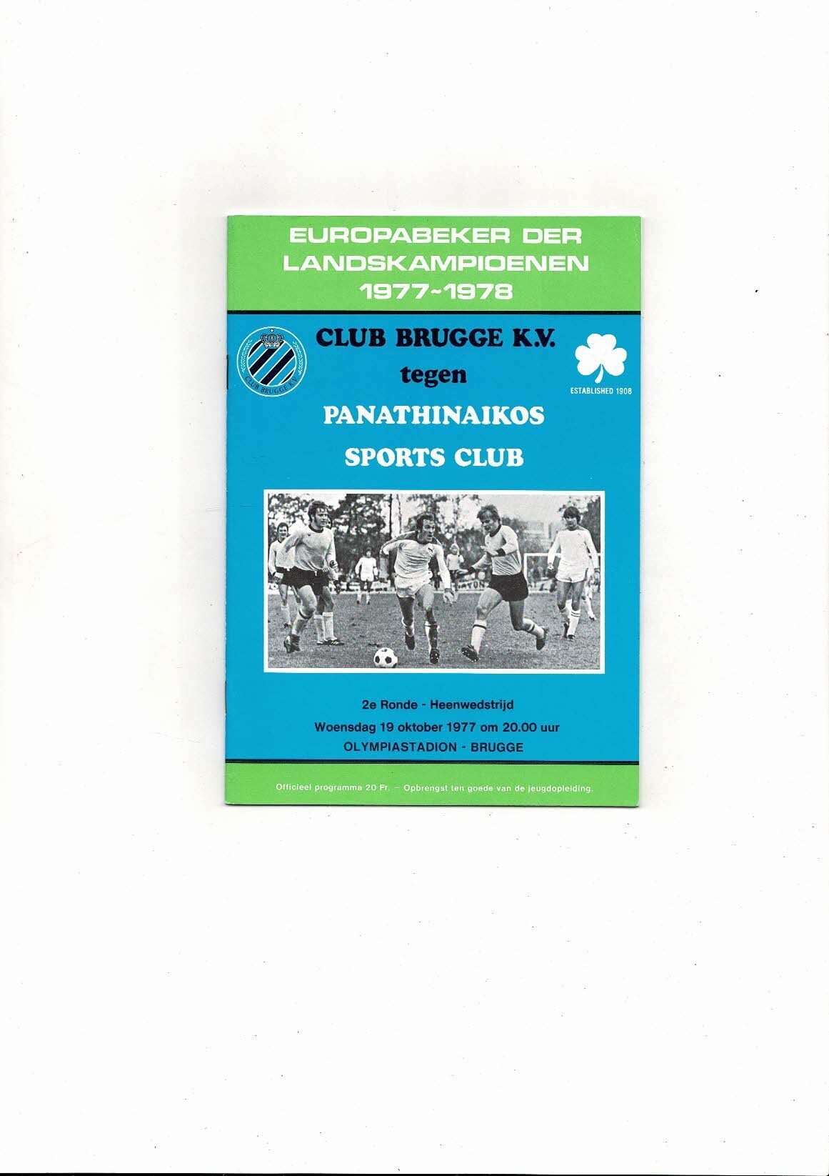 Club Brugge v Panathinaikos European Cup Football Programme 1977/78