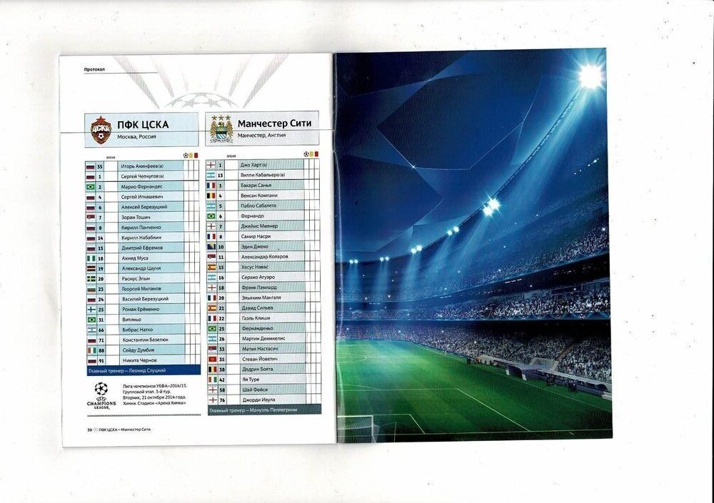 CSKA Moscow v Manchester City Champions League Football Programme 2014/15