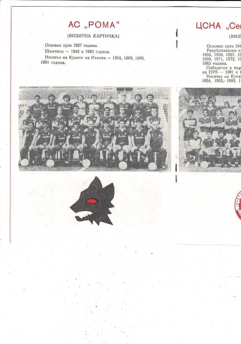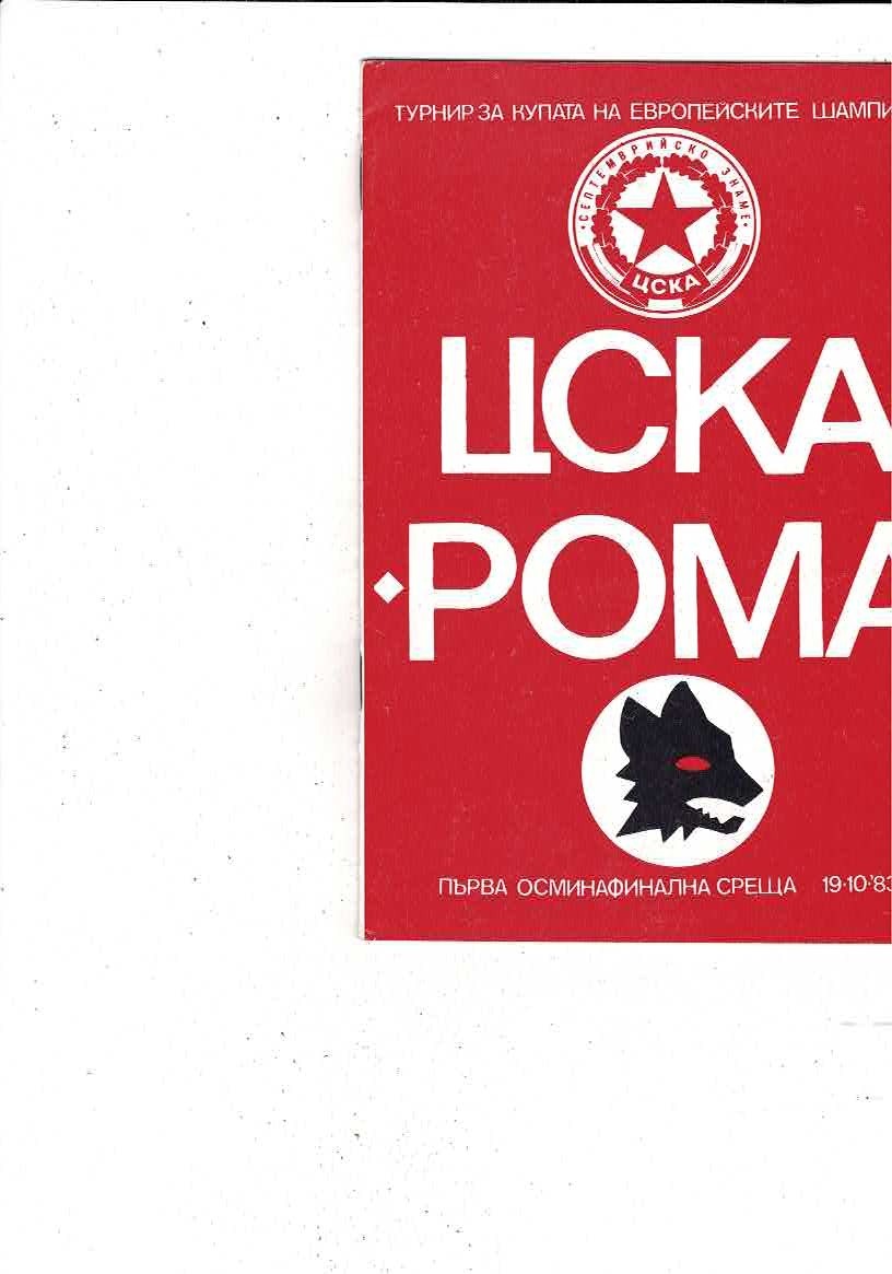 CSKA Sofia v AS Roma European Cup Football Programme 1983/84