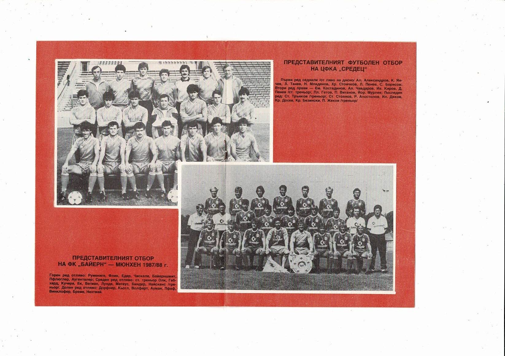 CSKA Sofia v FC Bayern Munich European Cup Football Programme 1987/88
