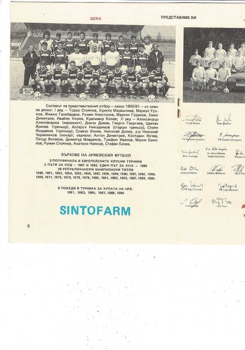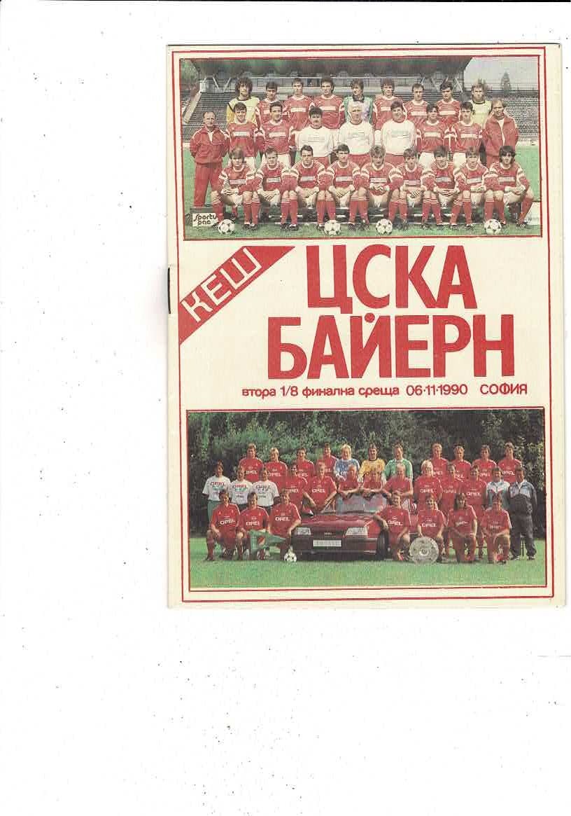 CSKA Sofia v FC Bayern Munich European Cup Football Programme 1990/91