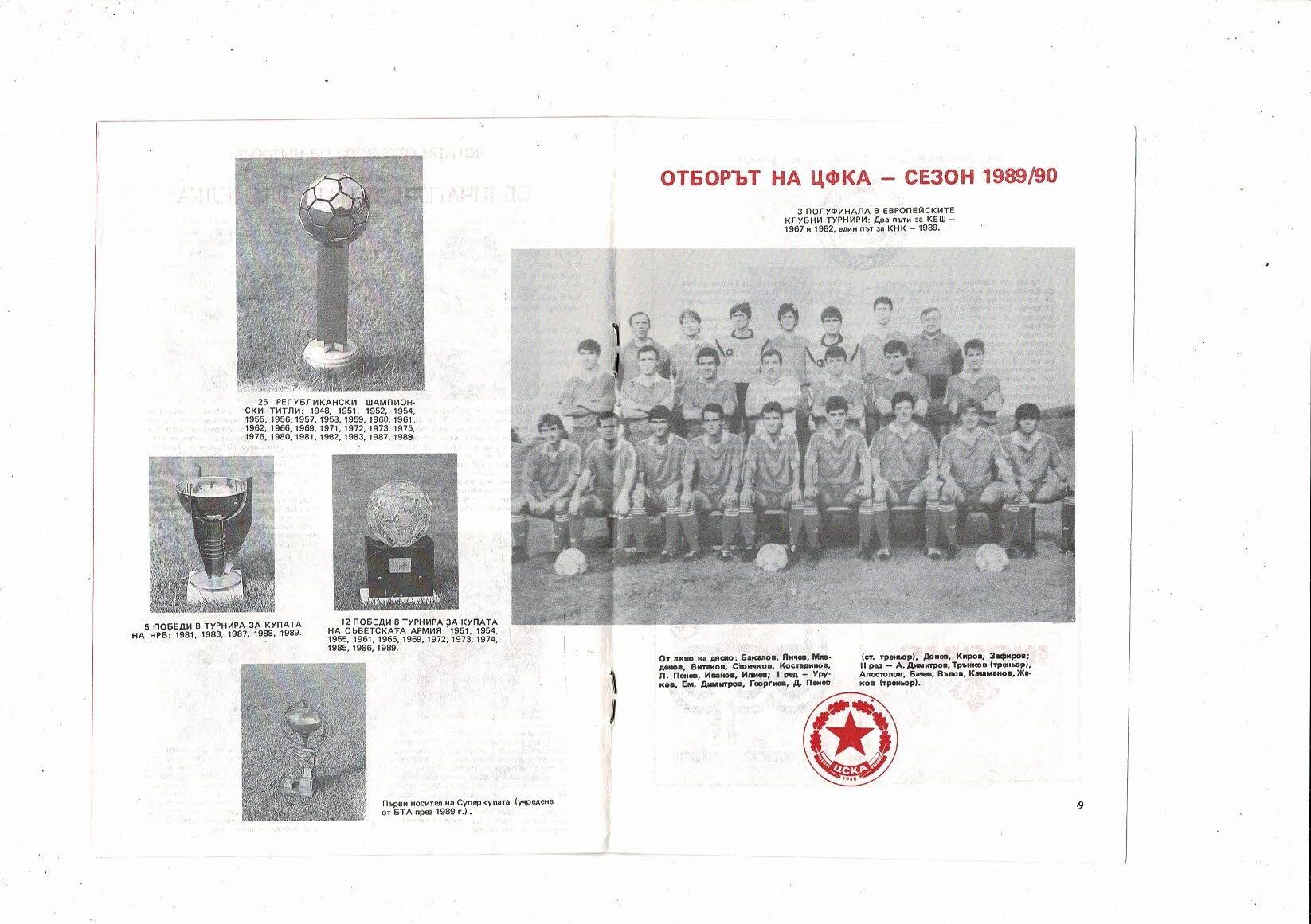 CSKA Sofia v KS Ruch Chorzow European Cup Football Programme 1989/90