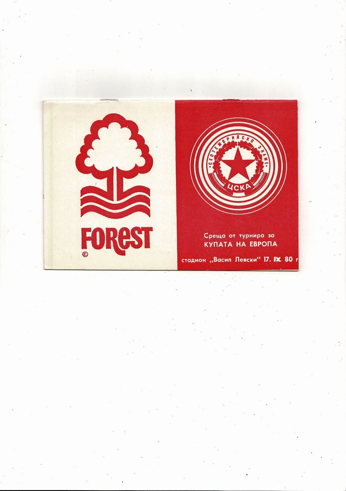 CSKA Sofia v Nottingham Forest European Cup Football Programme 1980/81