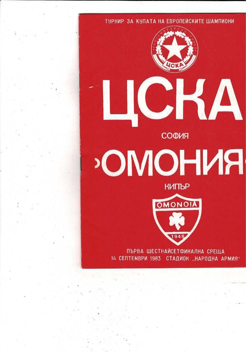 CSKA Sofia v Omonoia Nicosia European Cup Football Programme 1983/84
