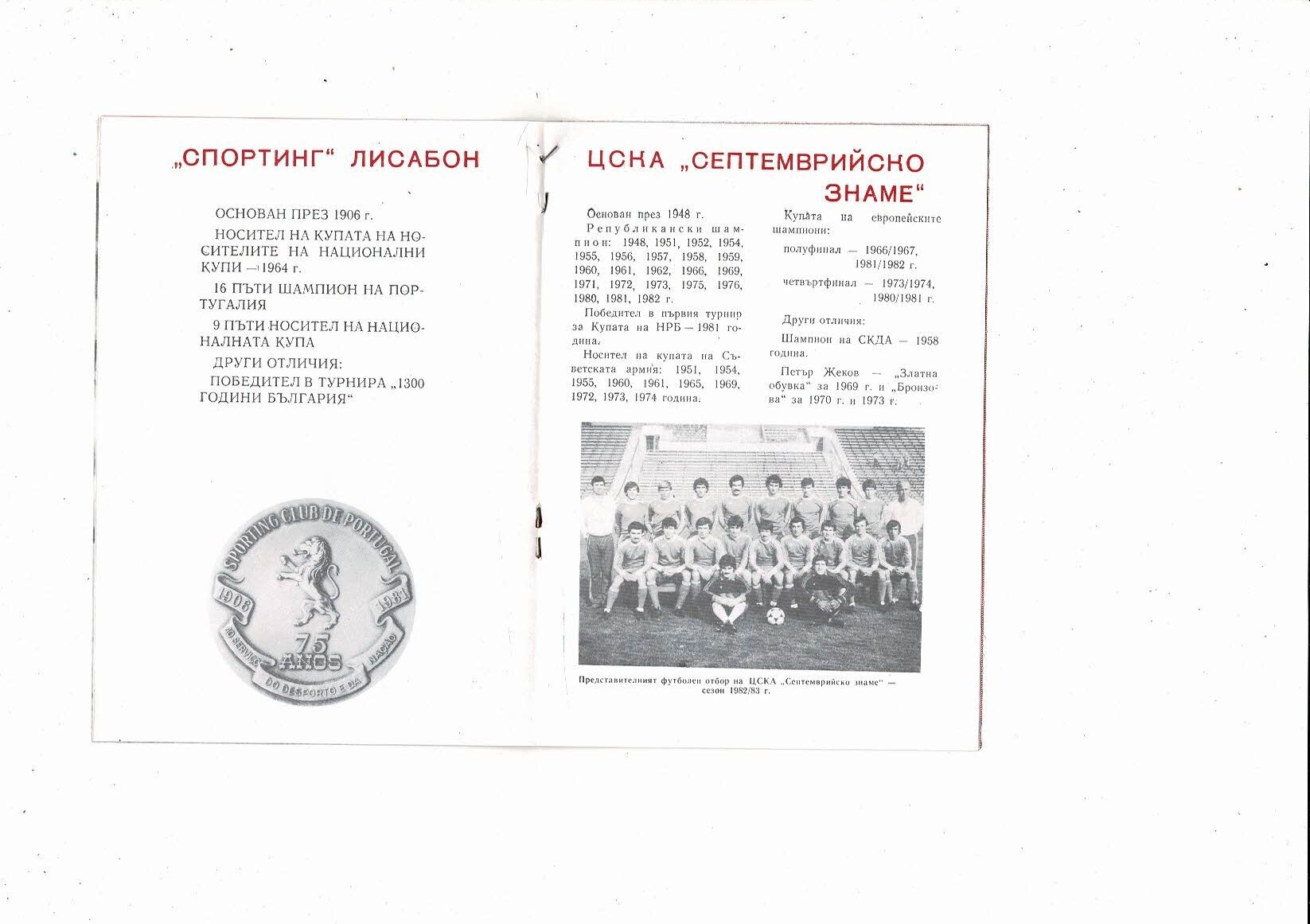 CSKA Sofia v Sporting Lisbon European Cup Football Programme 1982/83