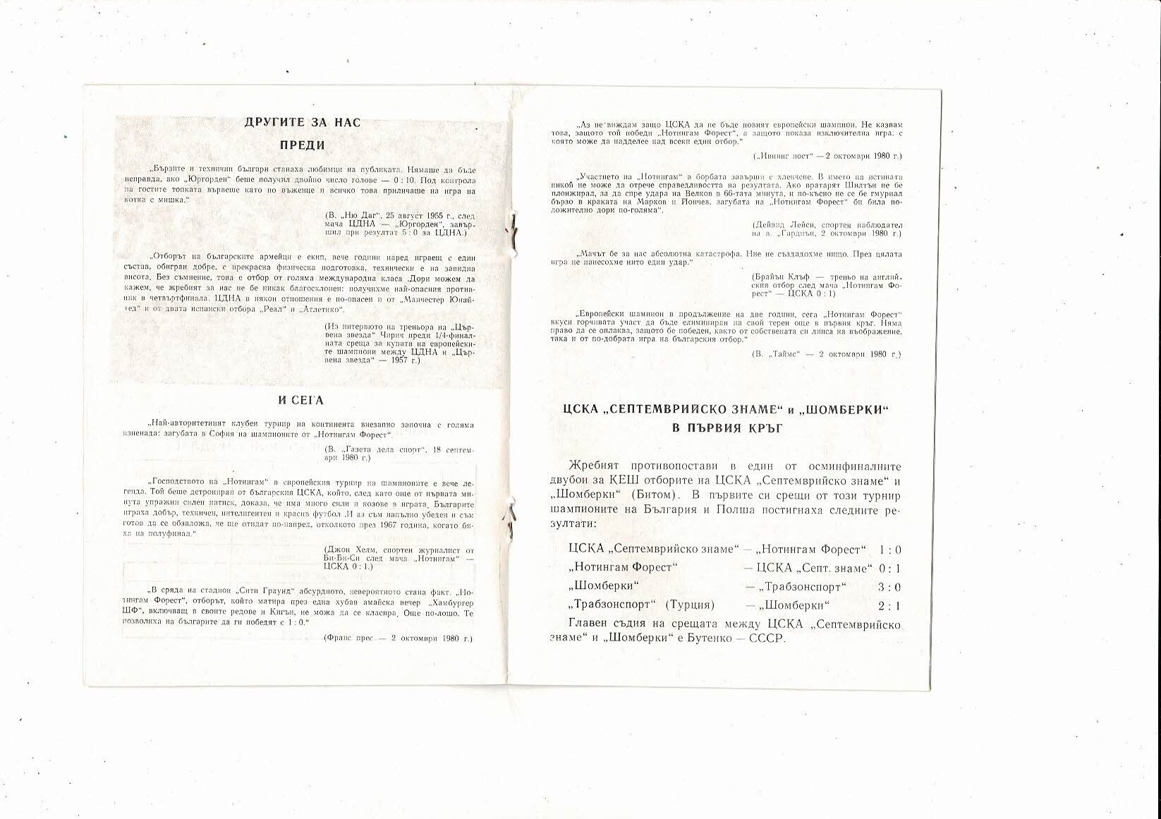 CSKA Sofia v Szombierki Bytom European Cup Football Programme 1980/81
