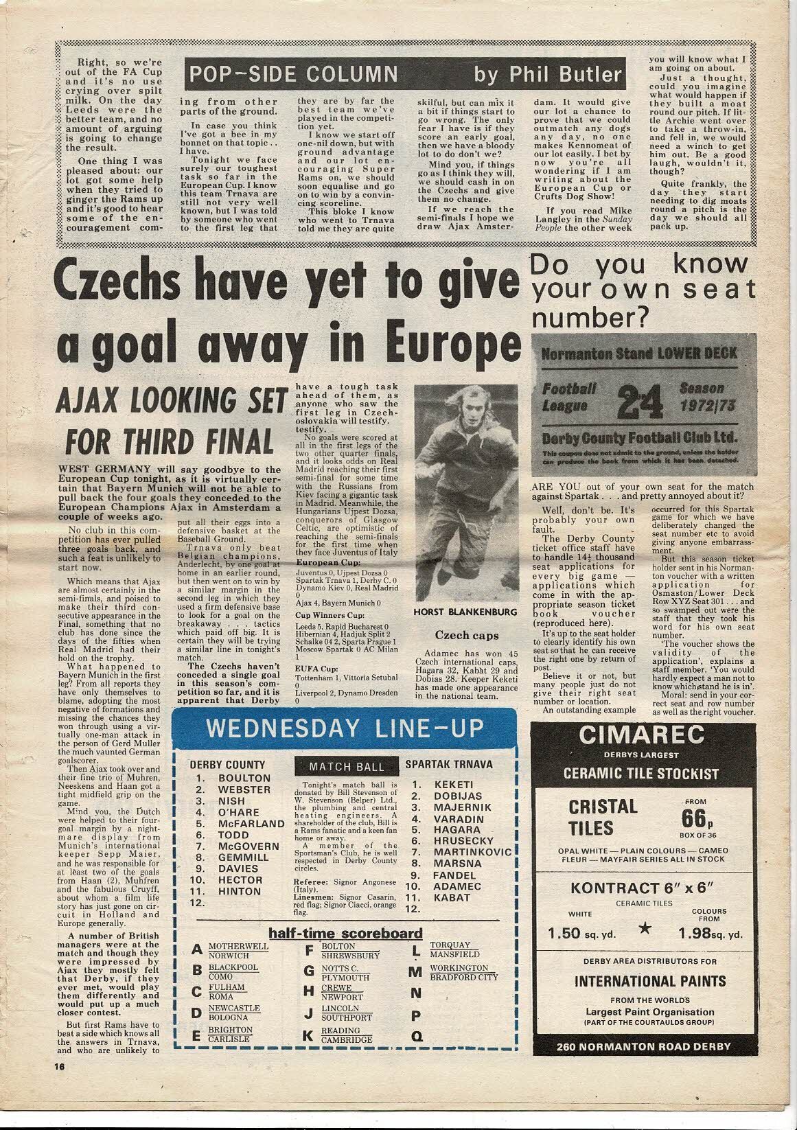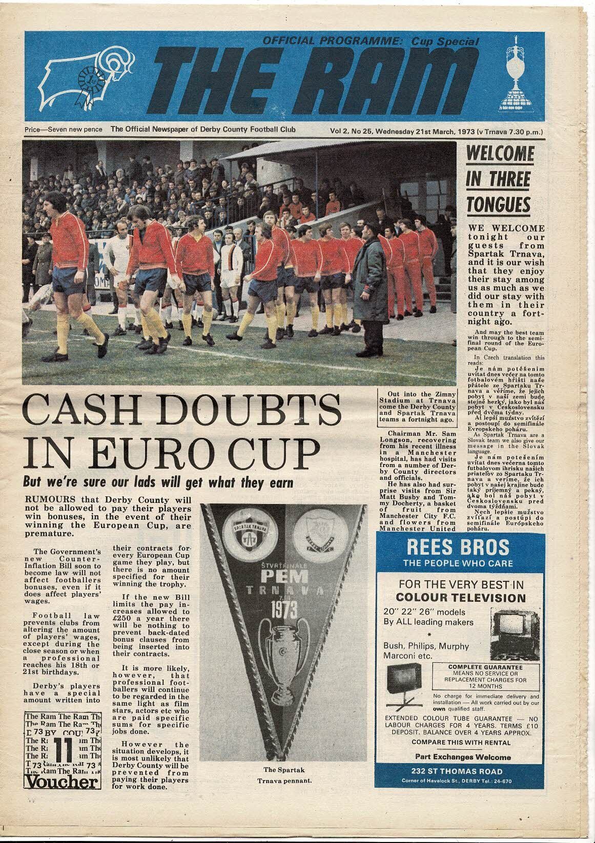 Derby County v Spartak Trnava European Cup Football Programme 1972/73