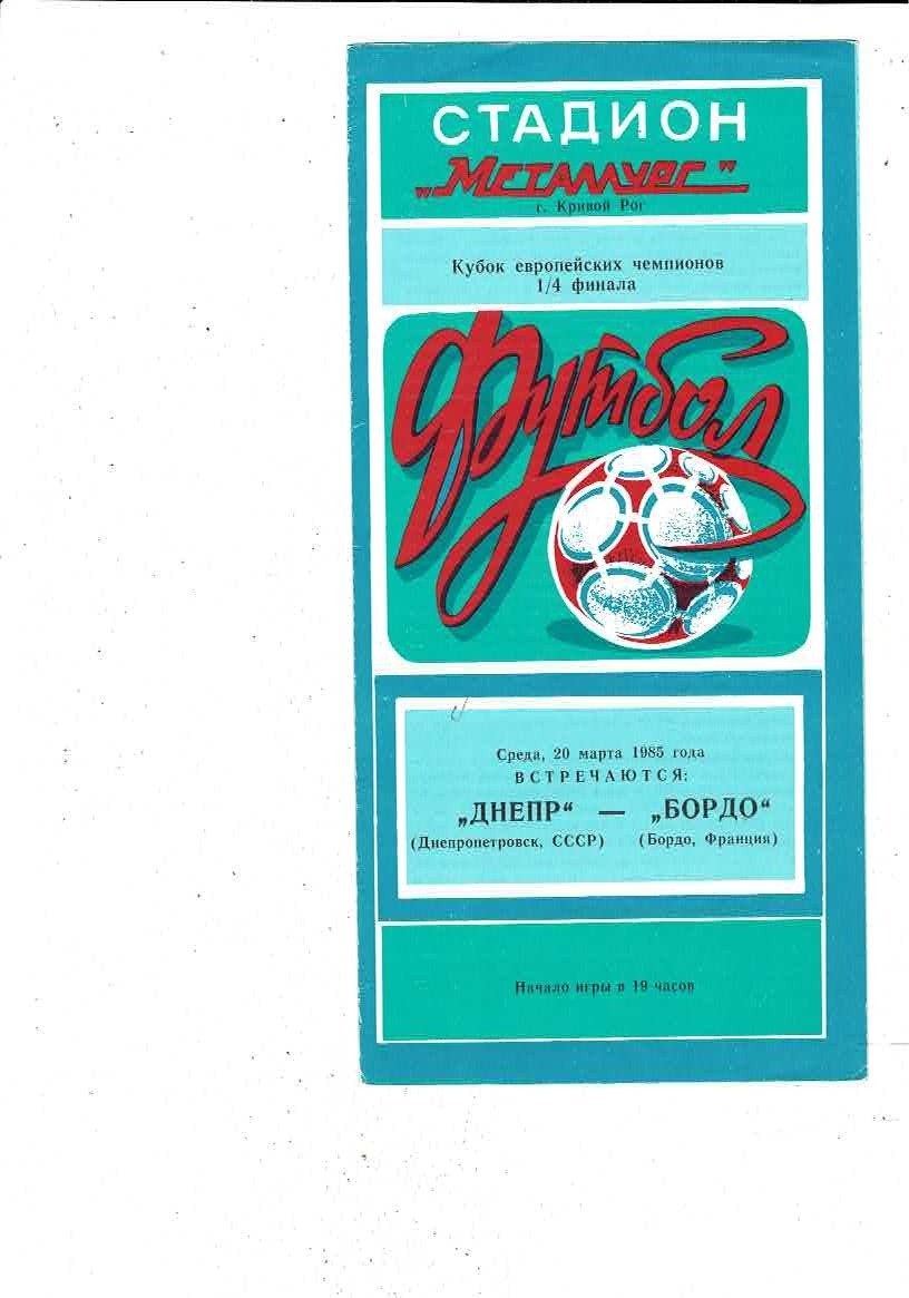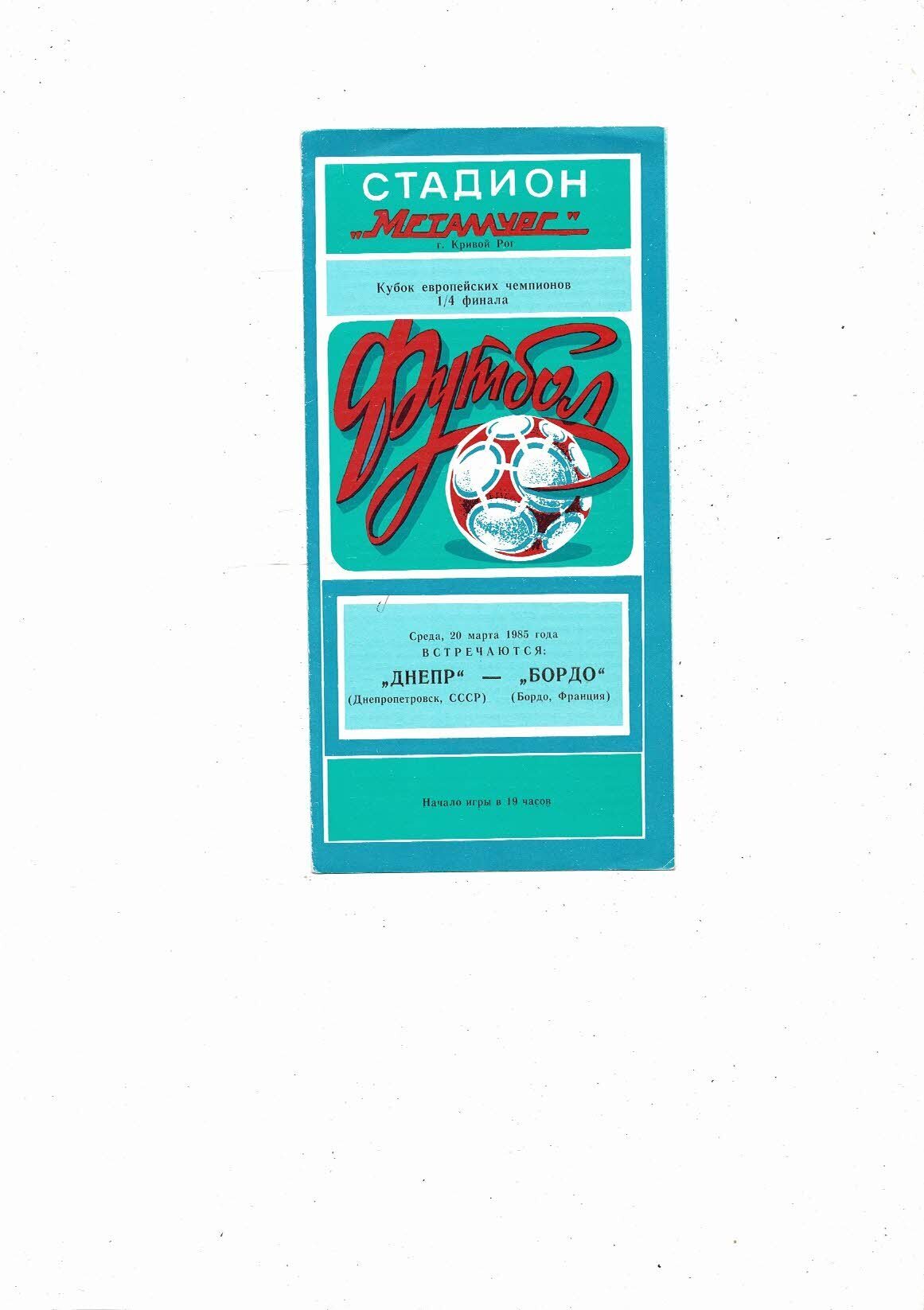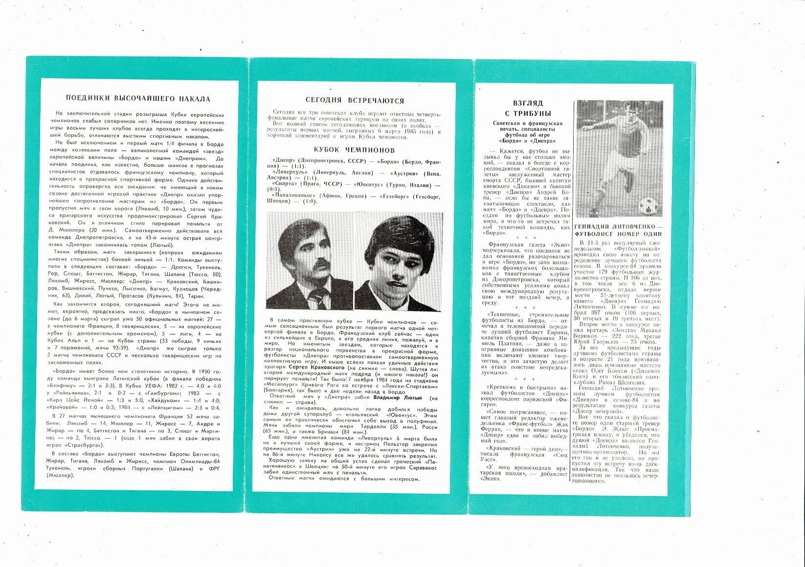 Dnepropetrovsk v Girondins de Bordeaux European Cup Football Programme 1984/85