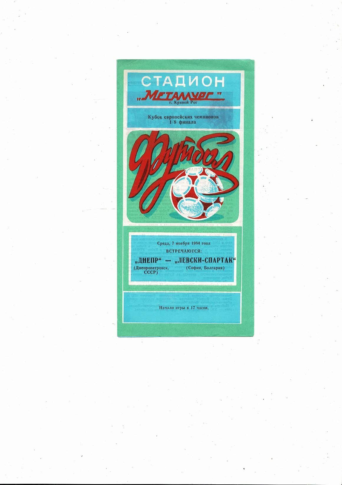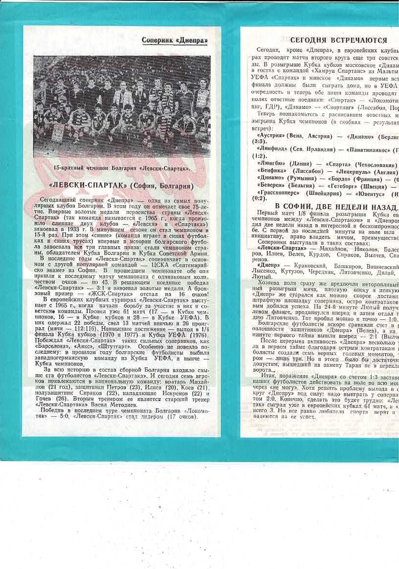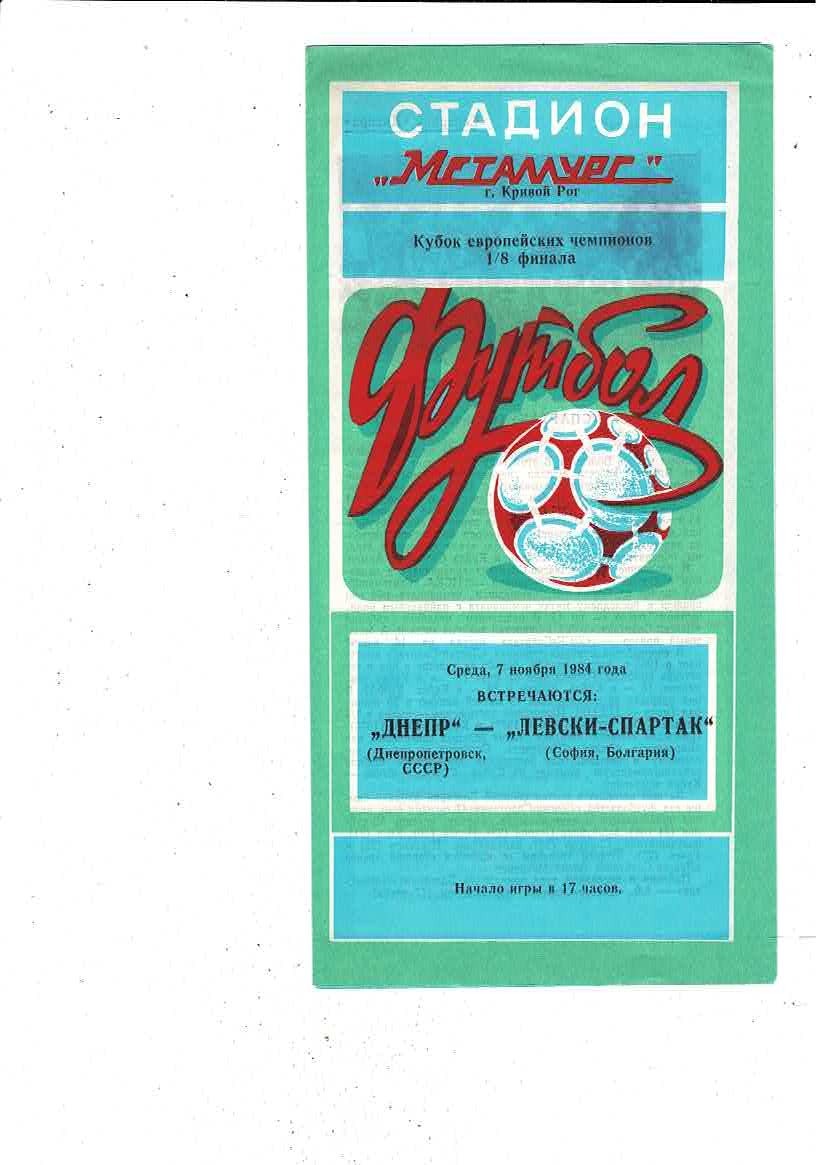 Dnepropetrovsk v Levski Spartak European Cup Football Programme 1984/85