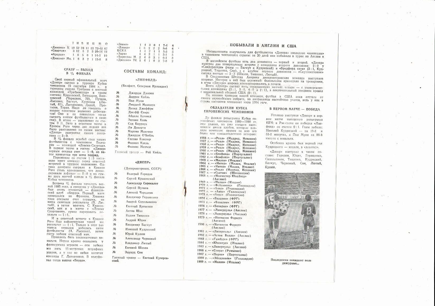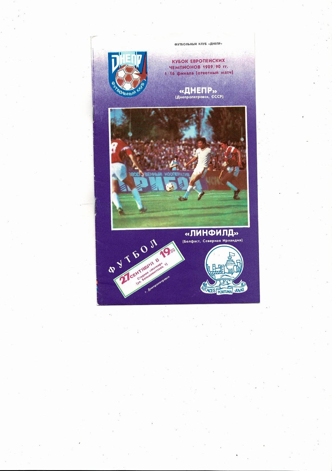 Dnepropetrovsk v Linfield European Cup Football Programme 1989/90