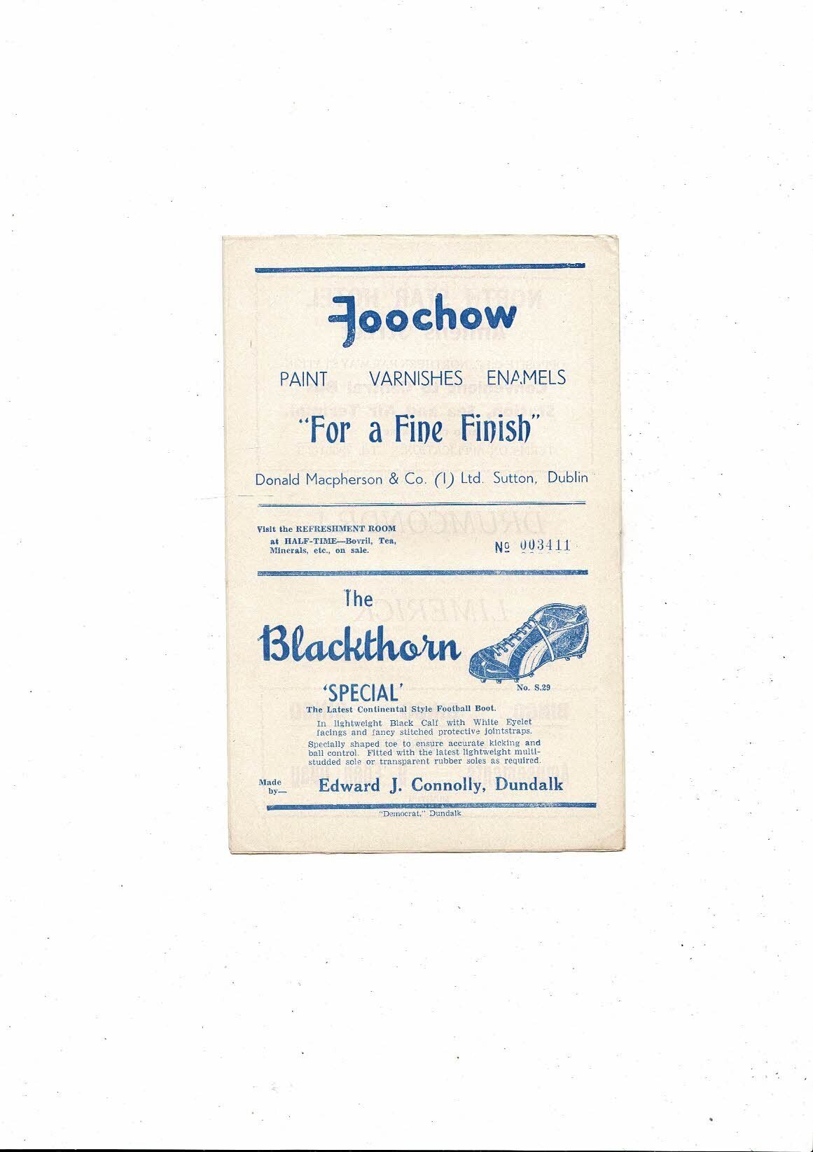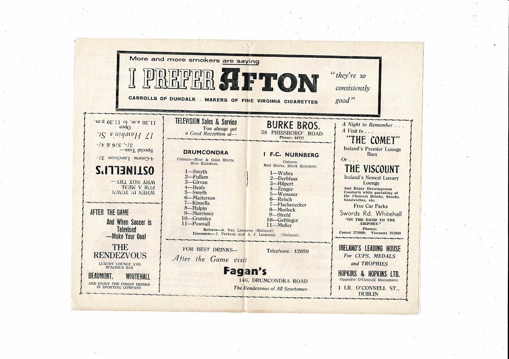 Drumcondra v Nurnberg European Cup Football Programme 1961/62