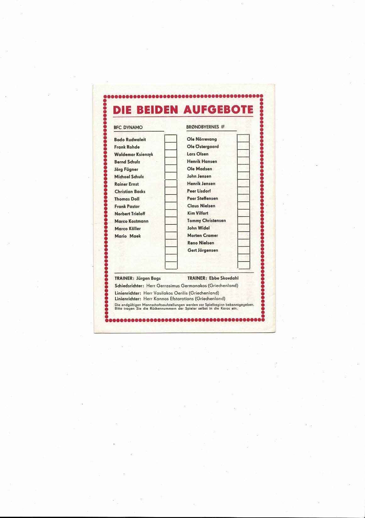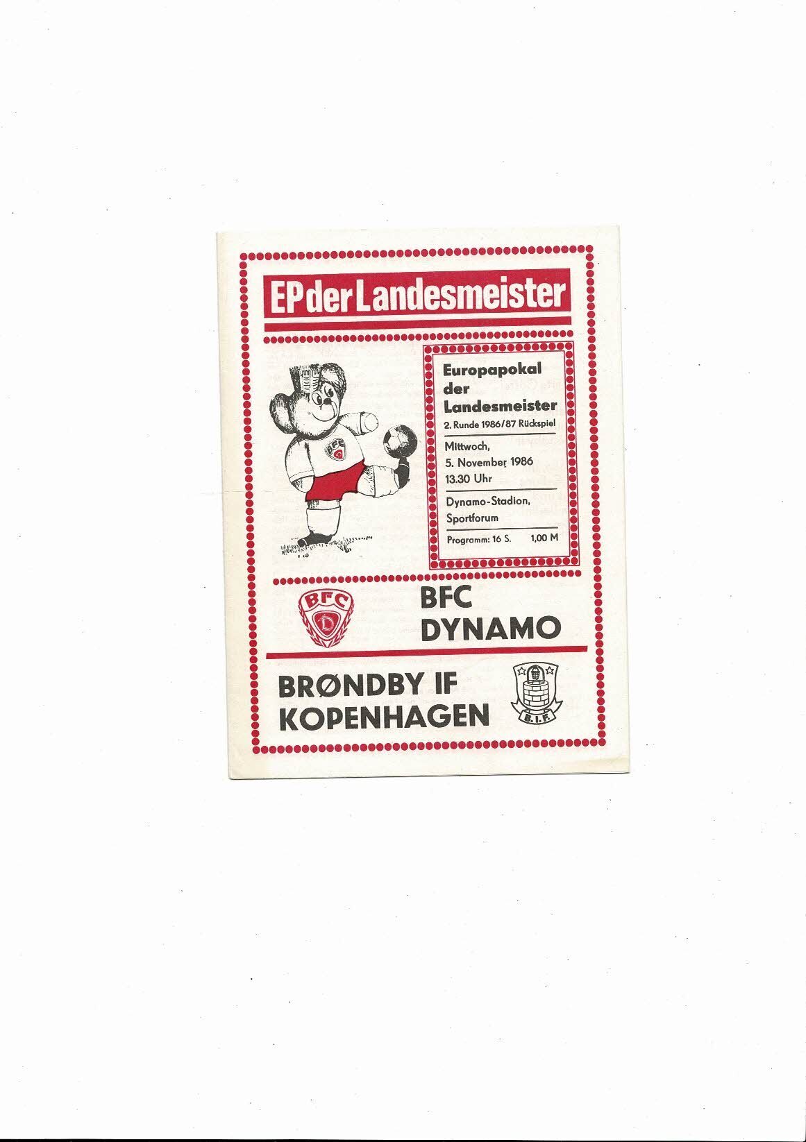 Dynamo Berlin v Brondby European Cup Football Programme 1986/87