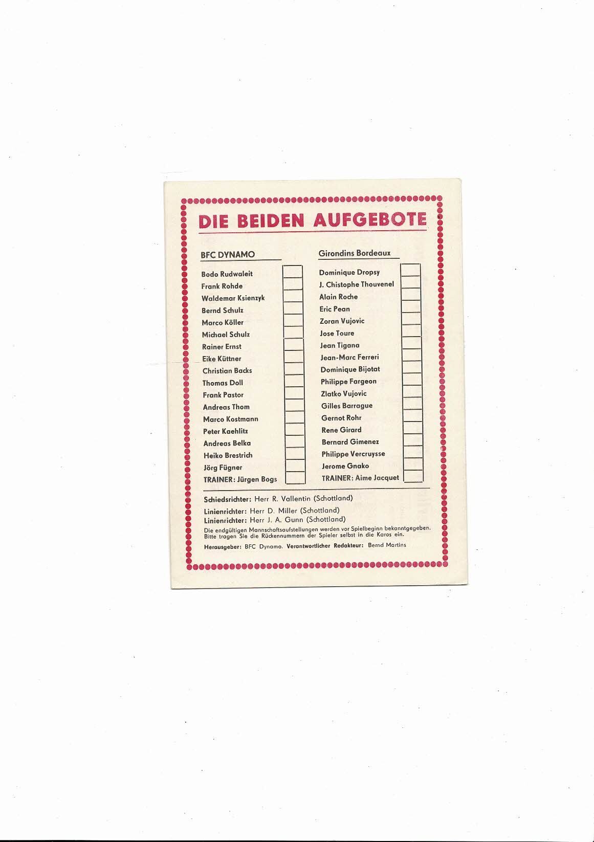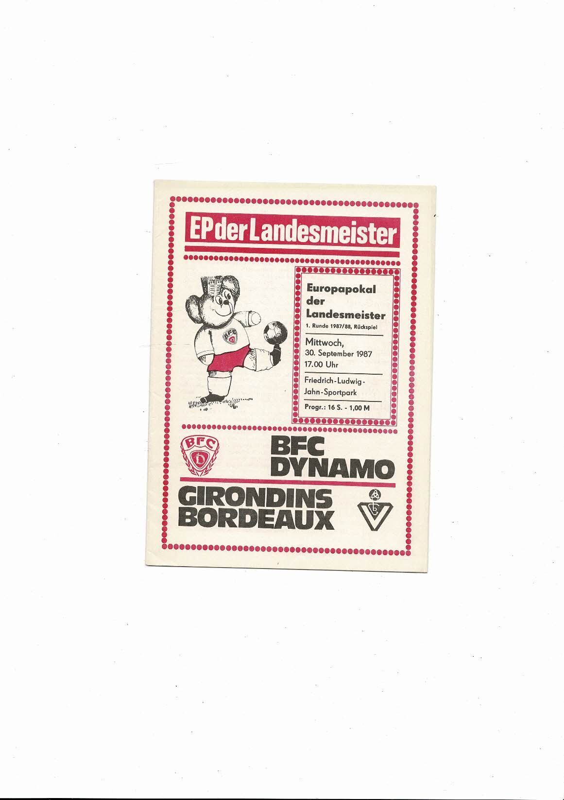 Dynamo Berlin v Girondins Bordeaux European Cup Football Programme 1987/88