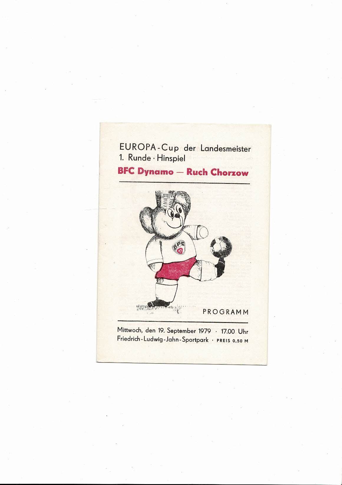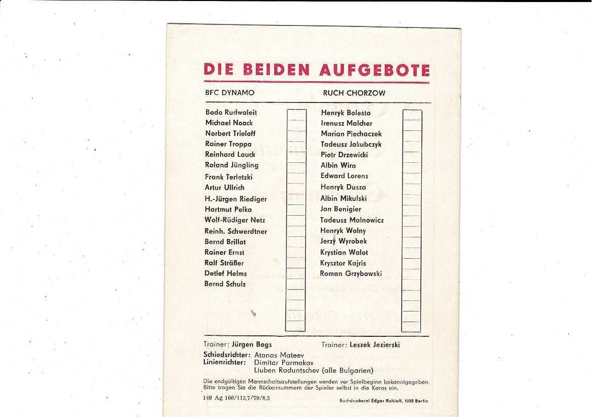 Dynamo Berlin v Ruch Chorzow European Cup Football Programme 1979/80