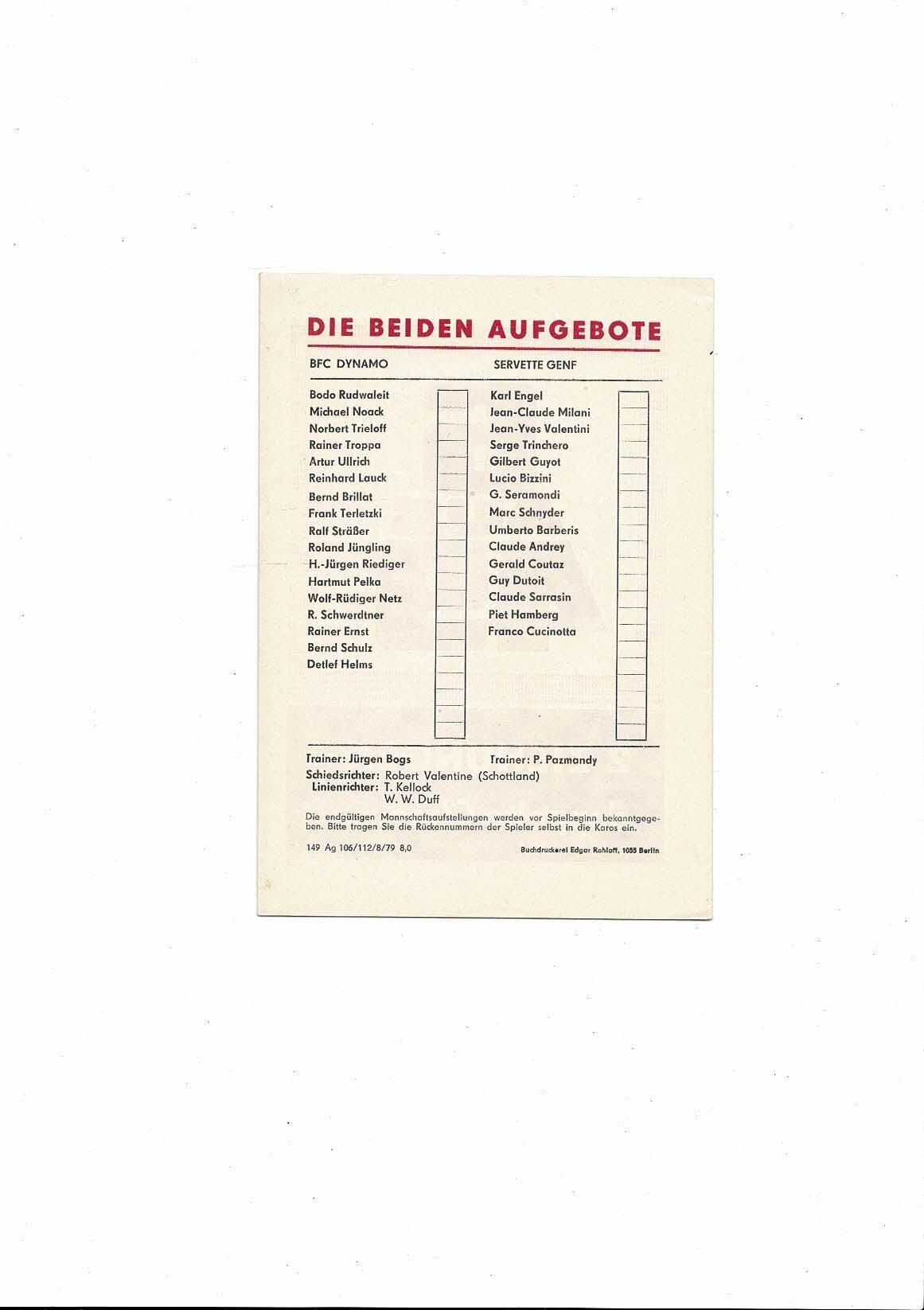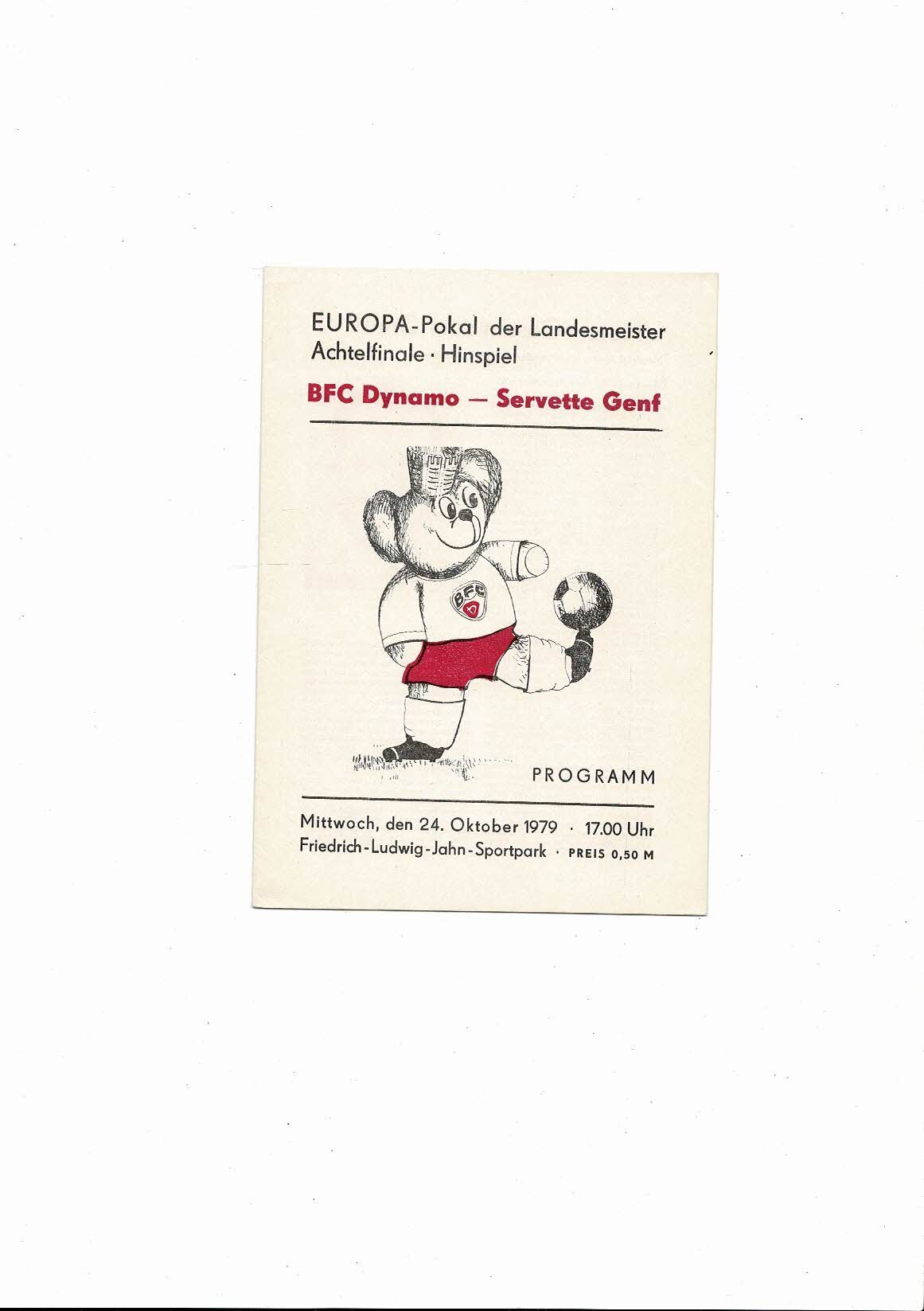 Dynamo Berlin v Servette Geneva European Cup Football Programme 1979/80