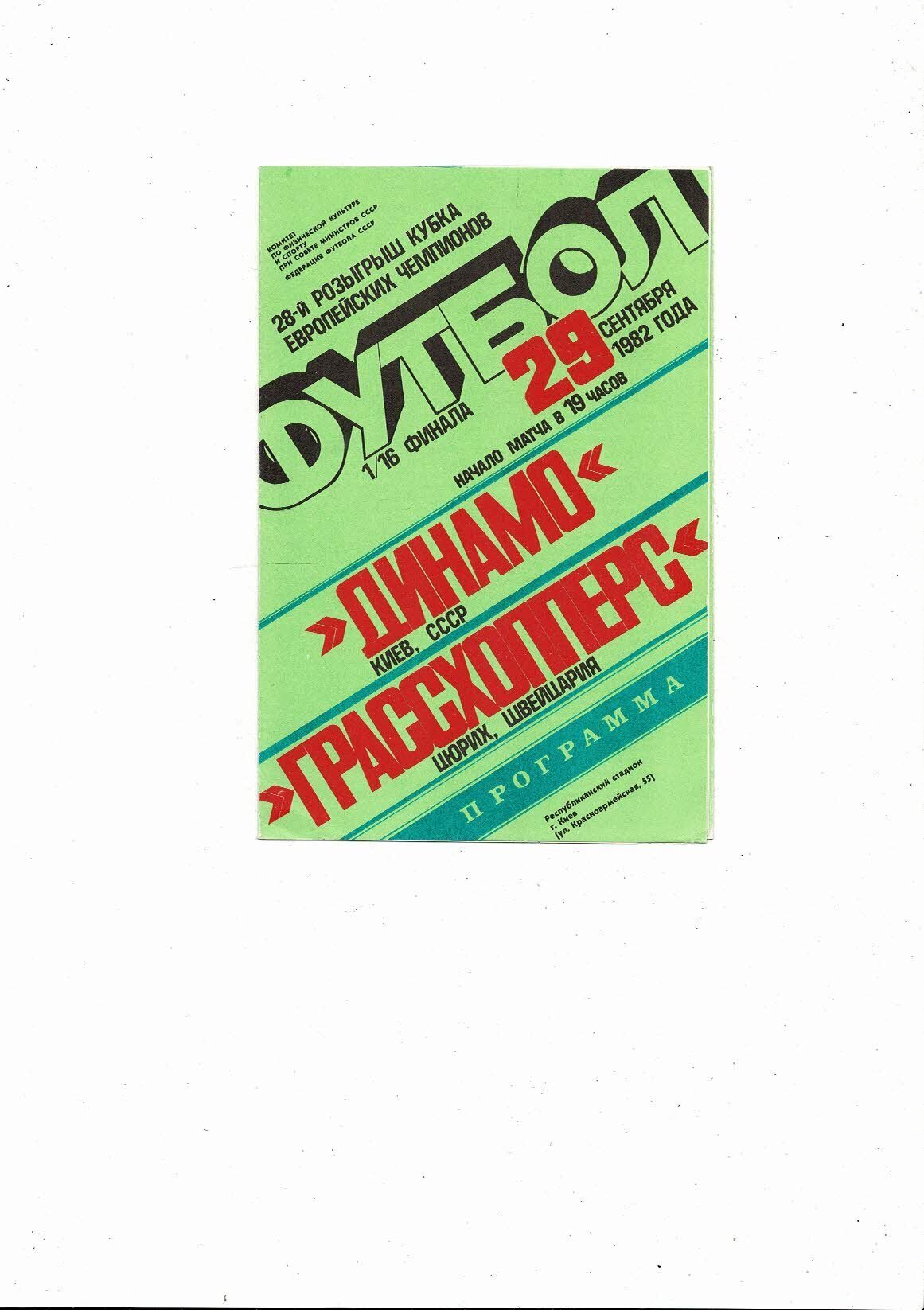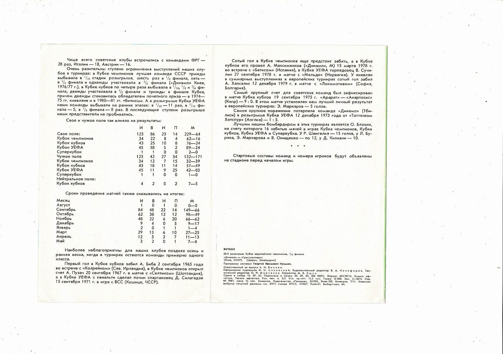 Dynamo Kiev v Grasshopper Zurich European Cup Football Programme 1982/83