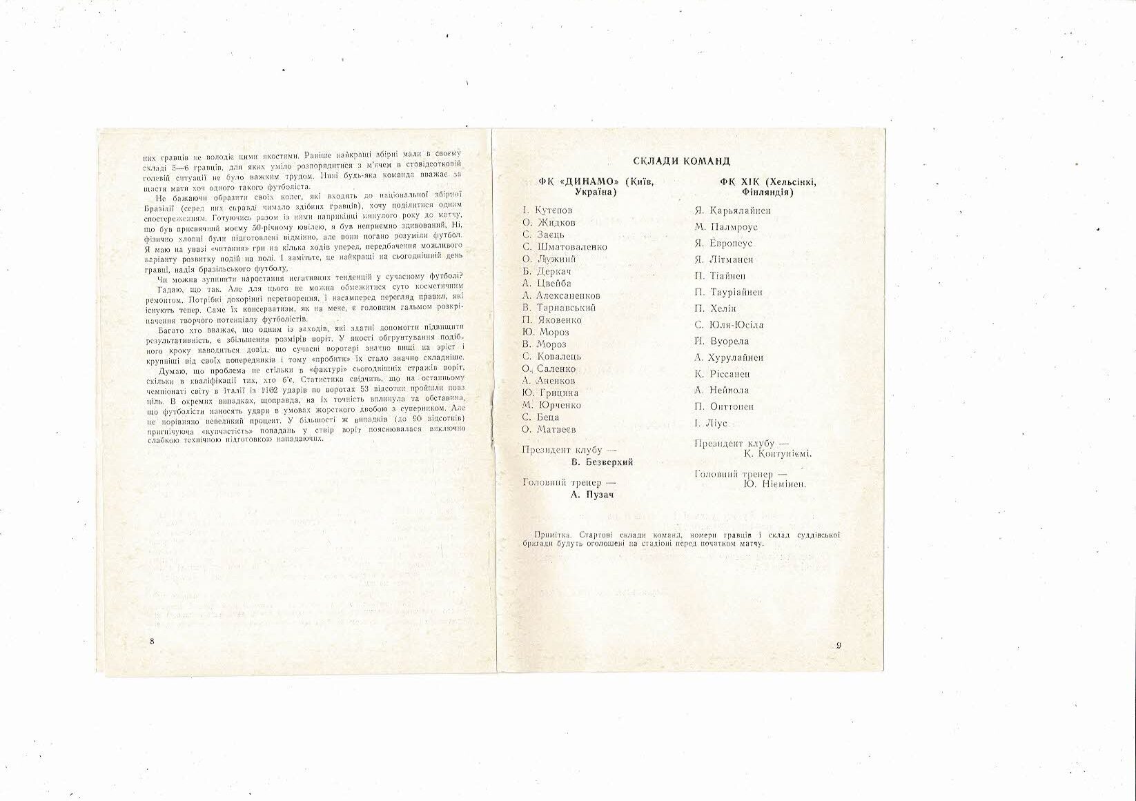 Dynamo Kiev v HJK Helsinki European Cup Football Programme 1991/92