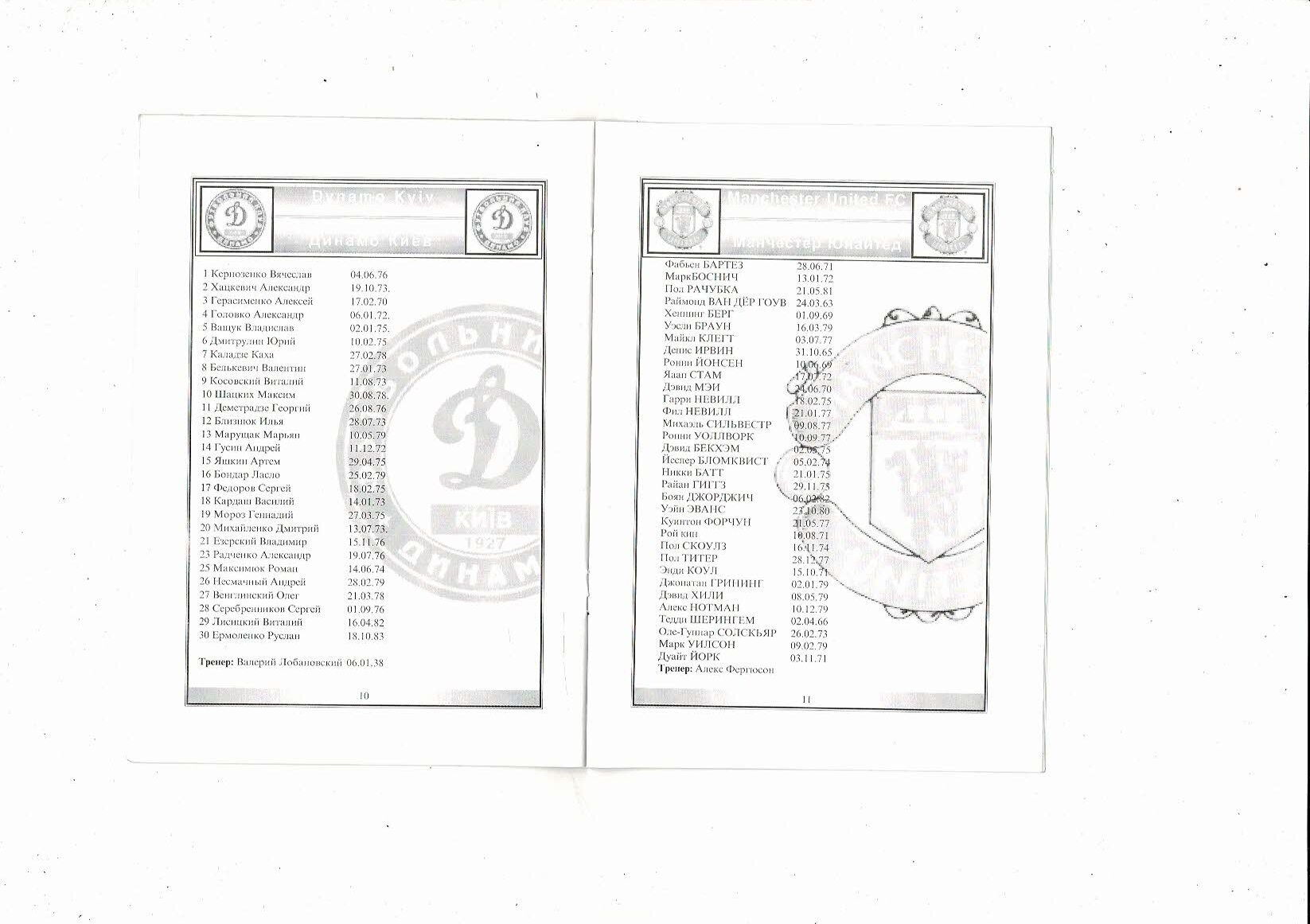 Dynamo Kiev v Manchester United Unofficial Champions League Football Programme 2000/01