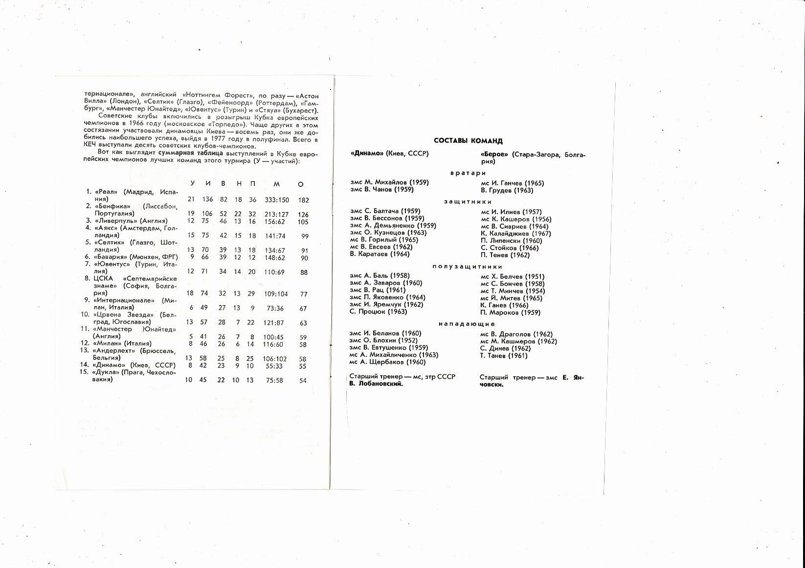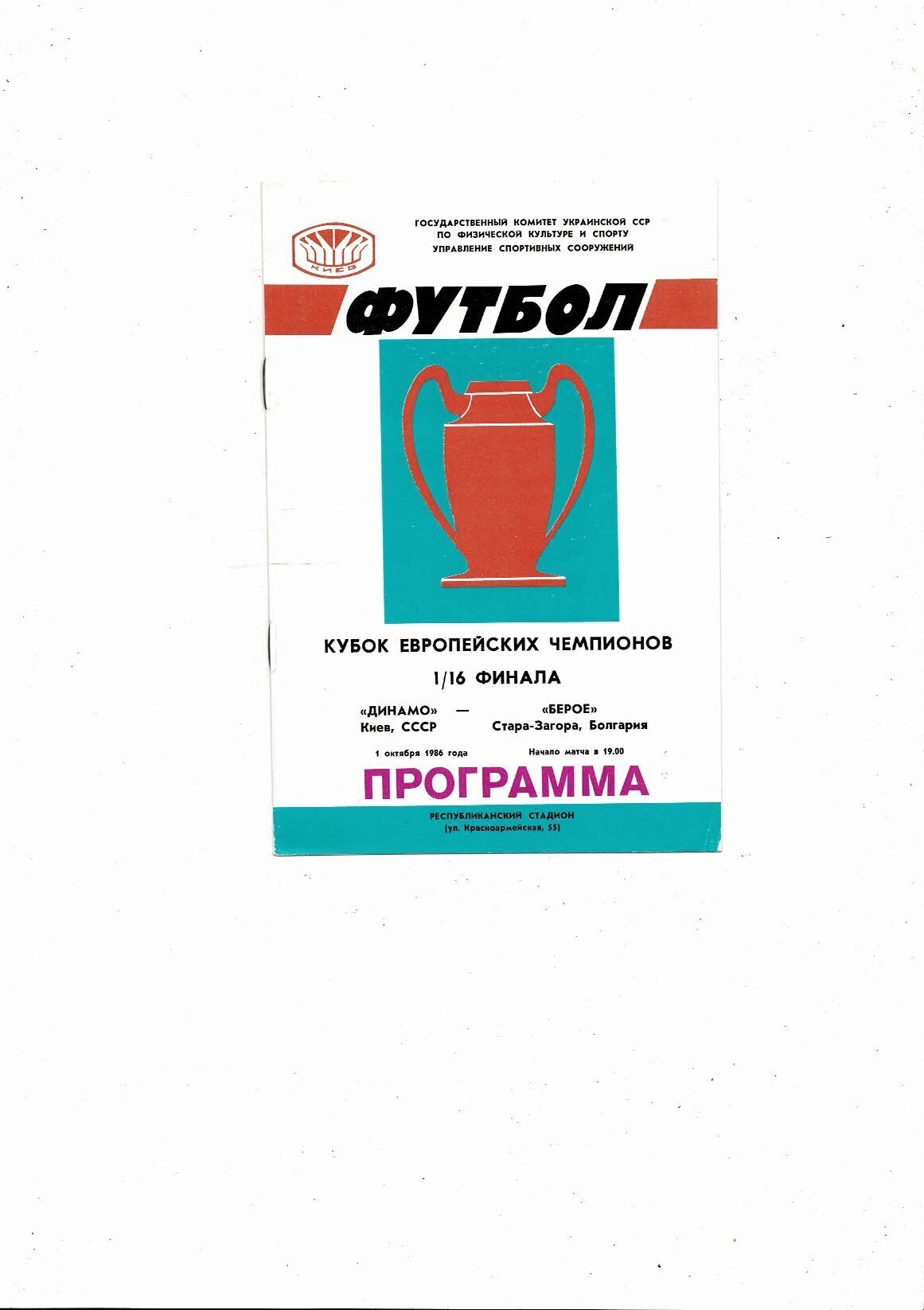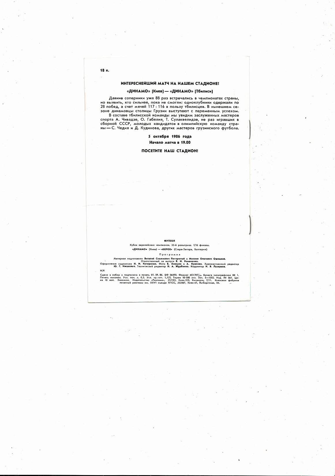 Dynamo Kiev v Star Zagora European Cup Football Programme 1986/87