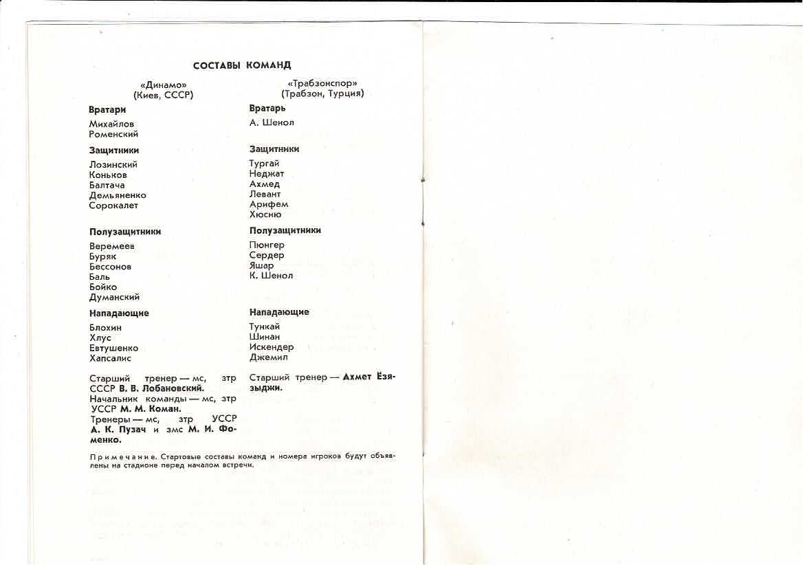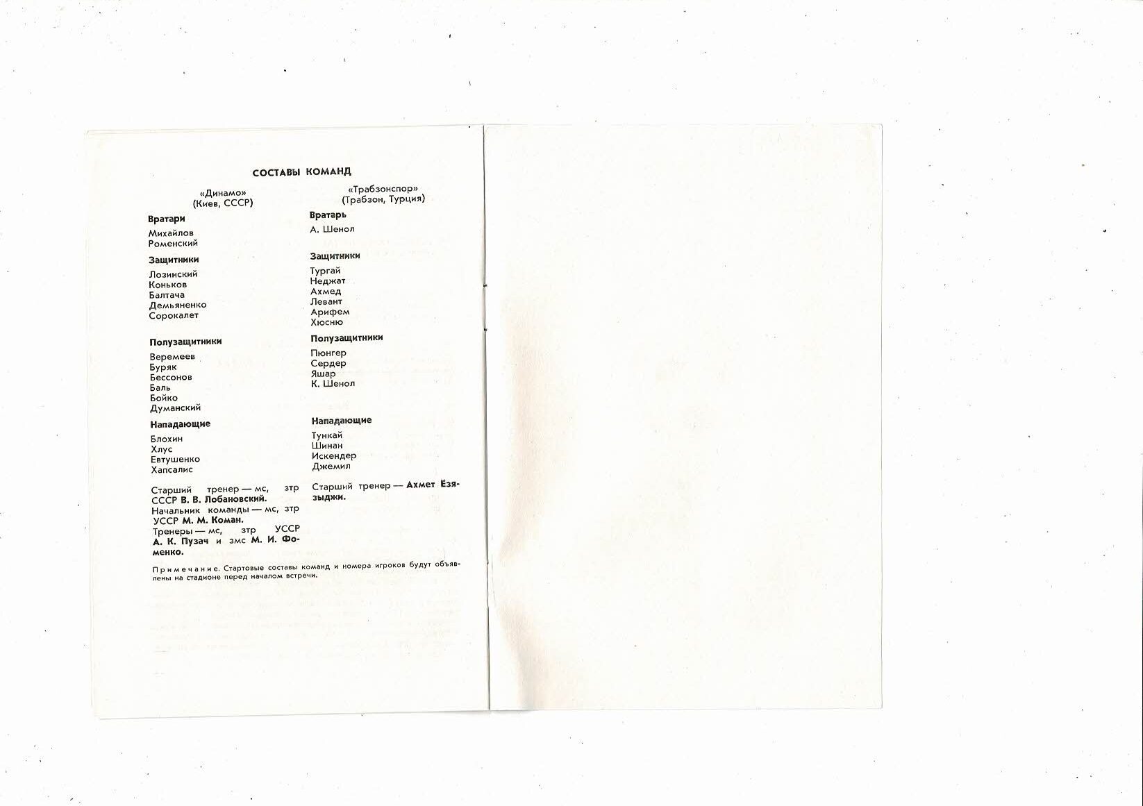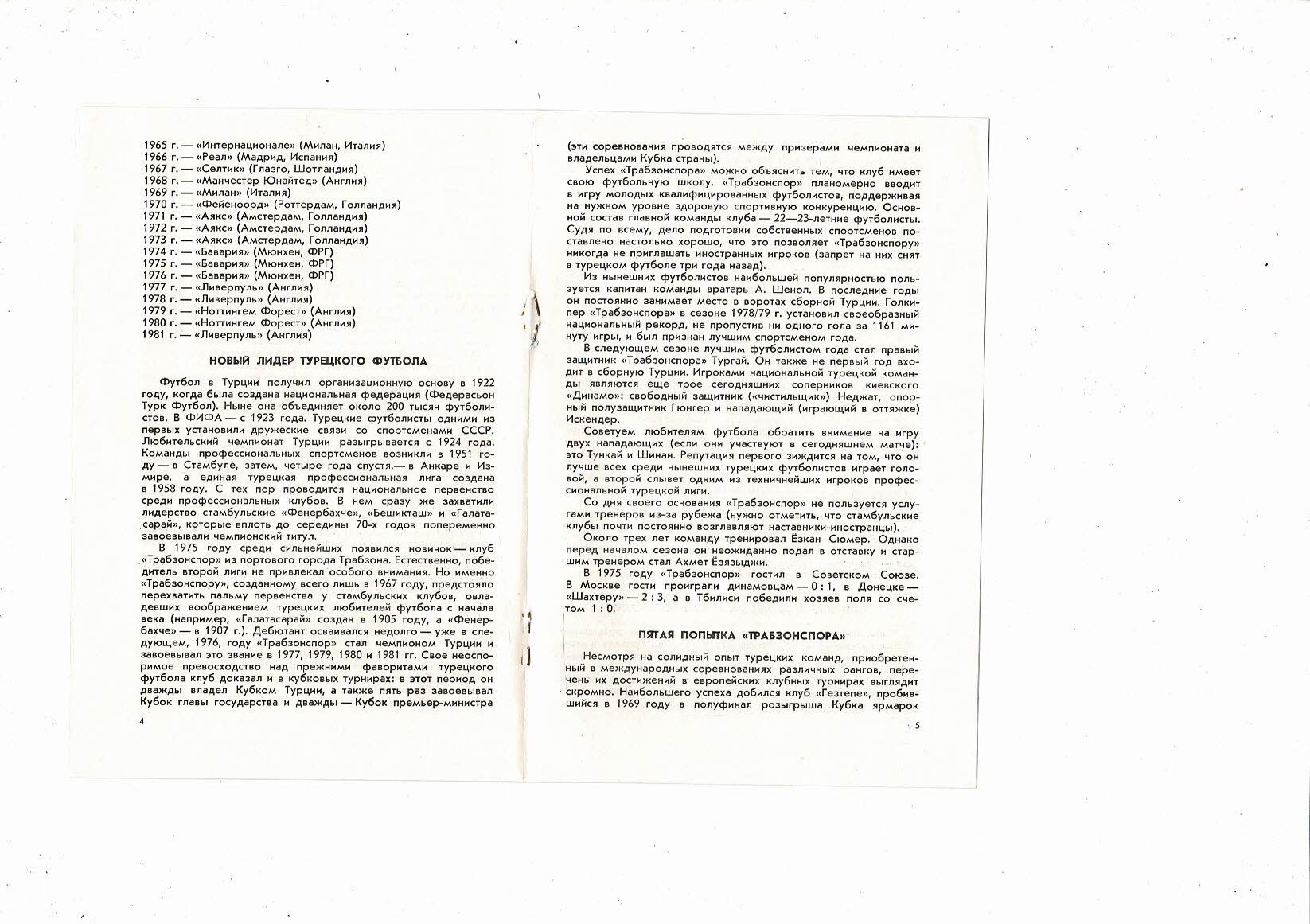Dynamo Kiev v Trabsonspor European Cup Football Programme 1981/82