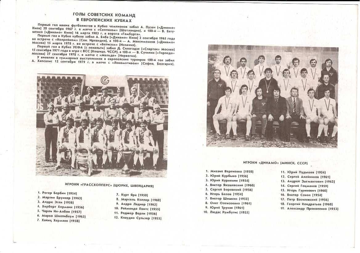 Dynamo Minsk v Grasshopper Zurich European Cup Football Programme 1983/84