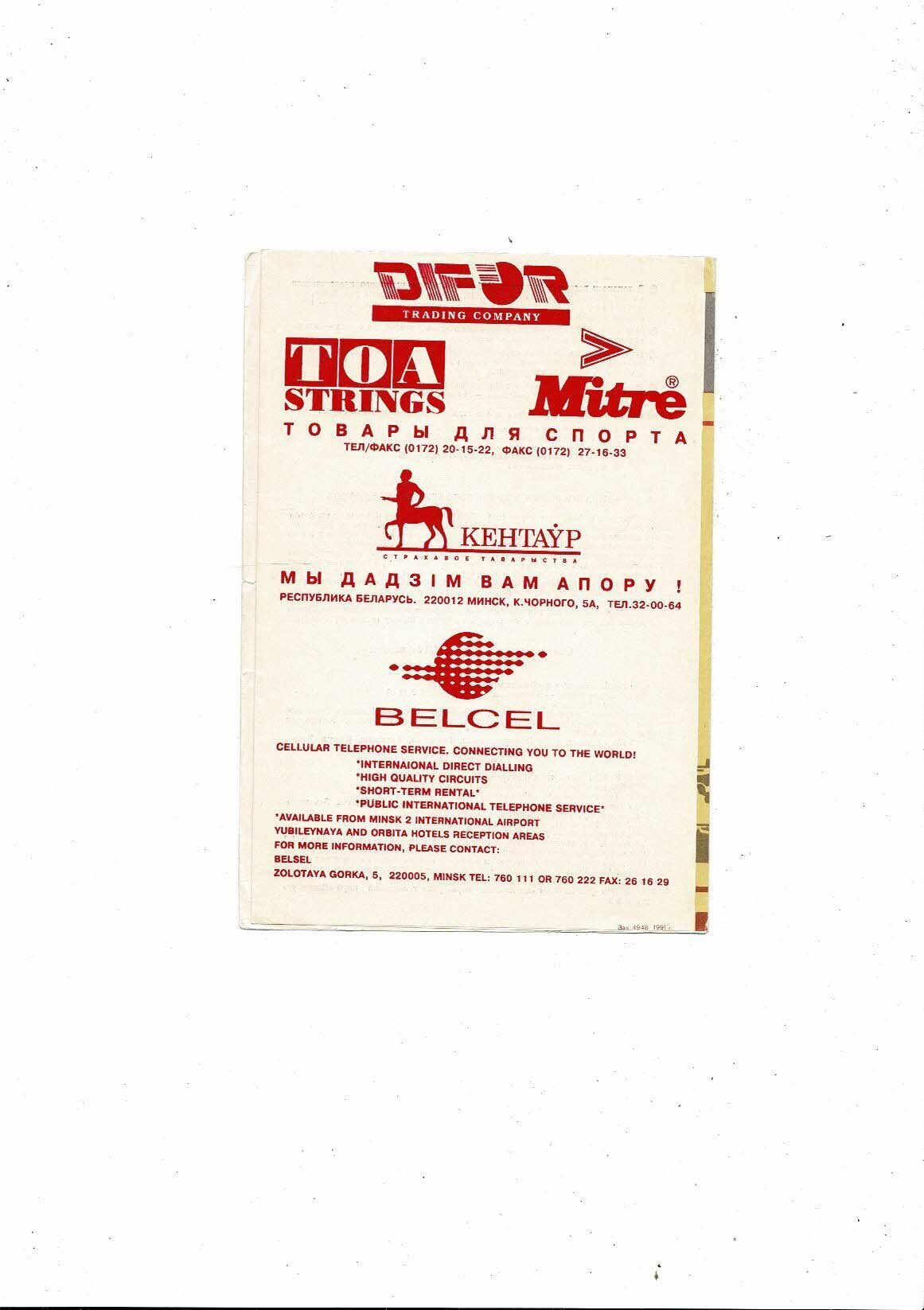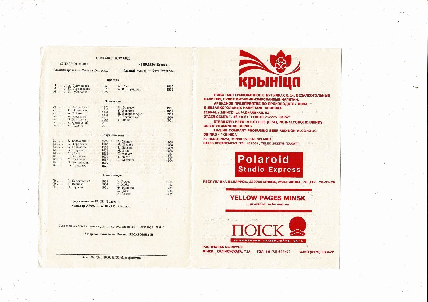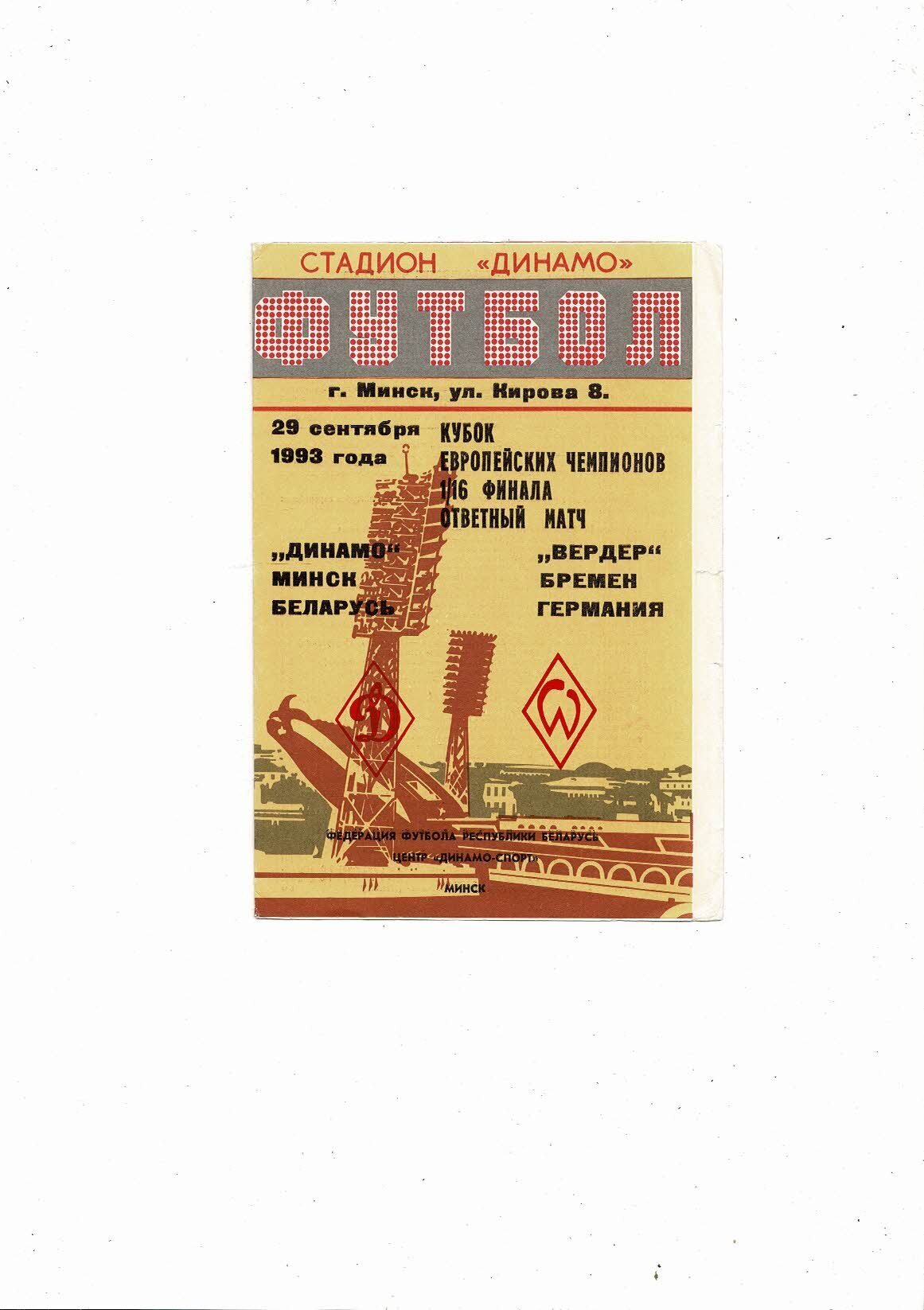 Dynamo Minsk v Werder Bremen European Football Programme 1993/94
