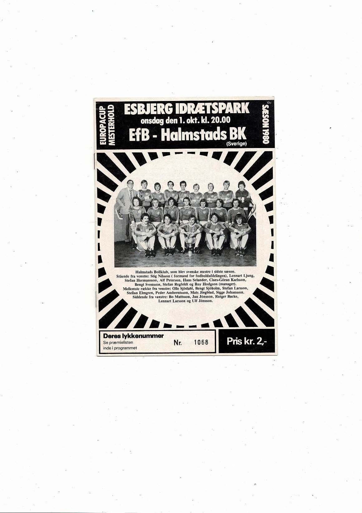 Esbjerg v Halmstads BK European Cup Football Programme 1980/81