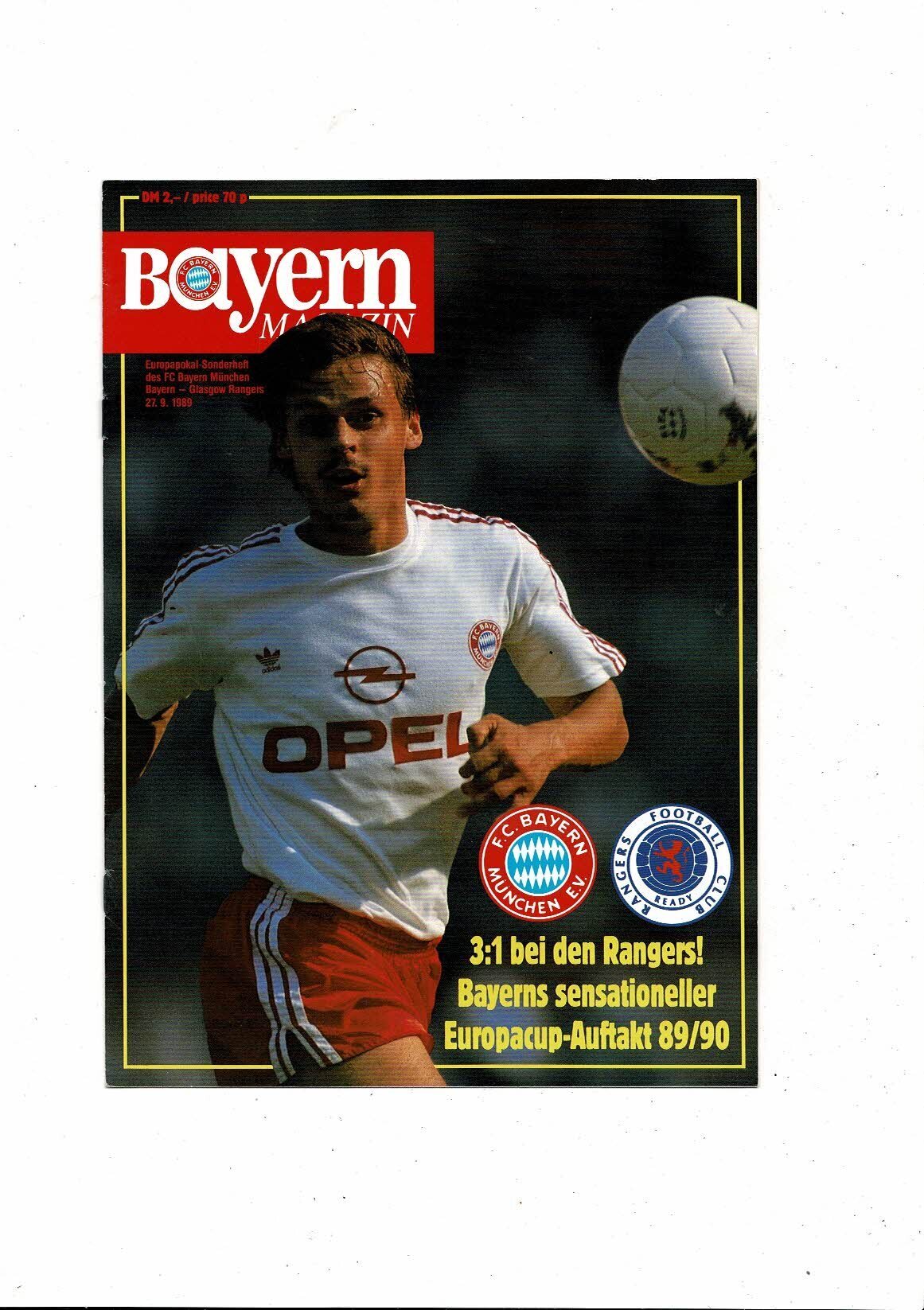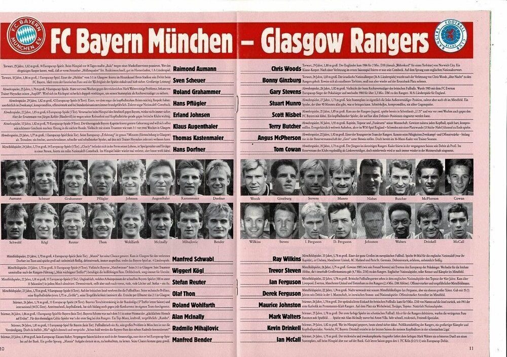 FC Bayern Munich v Glasgow Rangers European Cup Football Magazine 1989/90