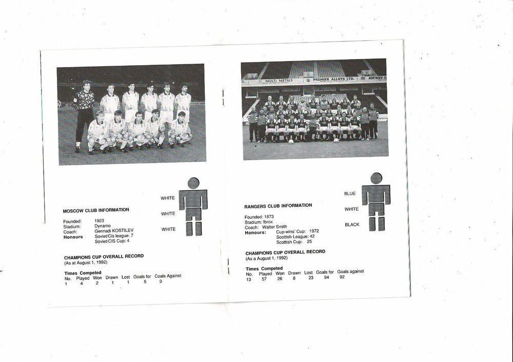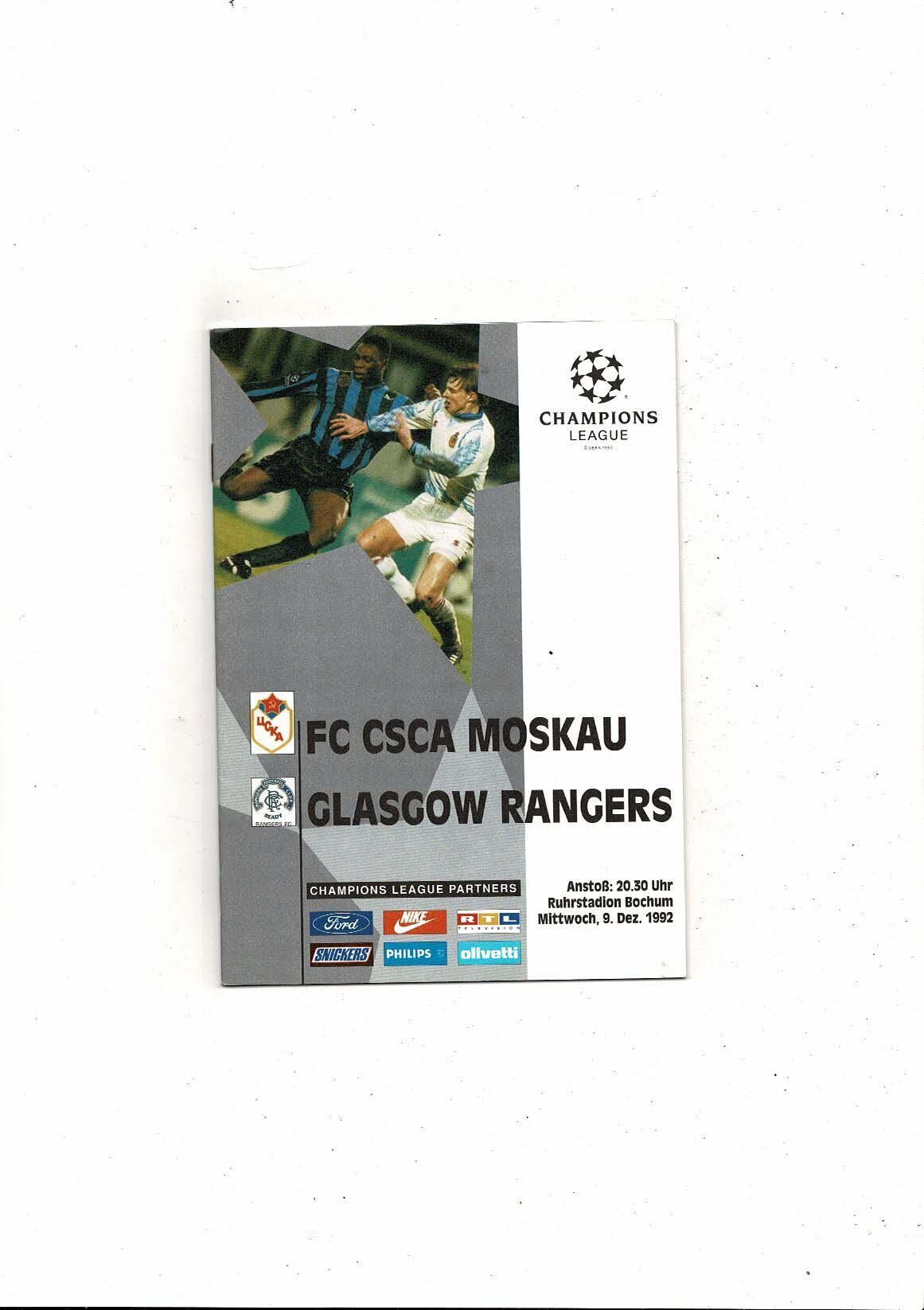 FC CSKA Moscow v Glasgow Rangers UEFA Champions League Football Programme 1992/93