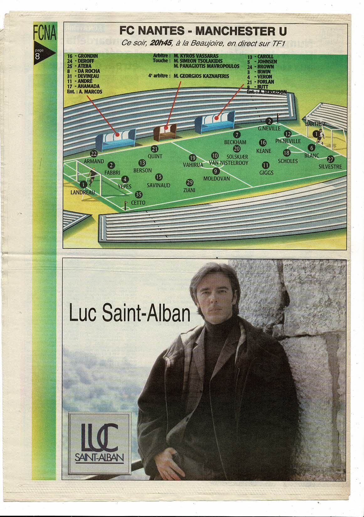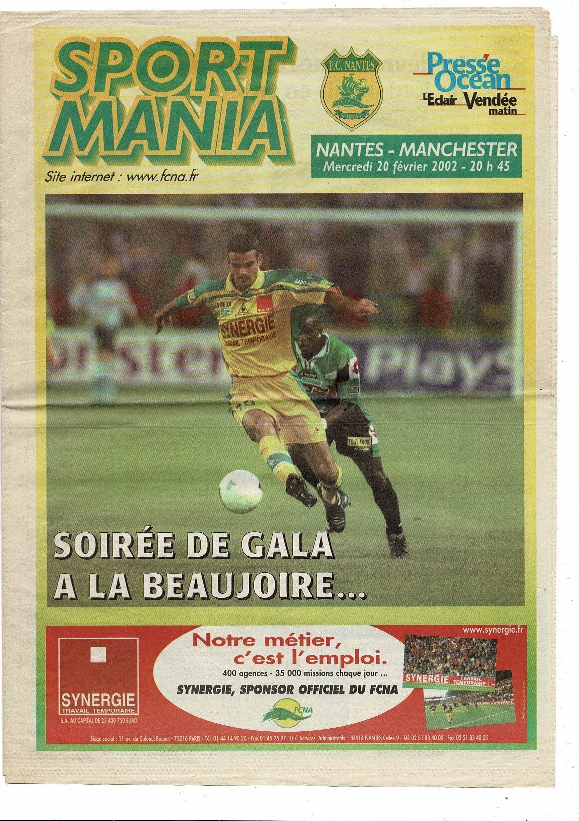 FC Nantes v Manchester United Champions League Newspaper Football Programme 2001/02