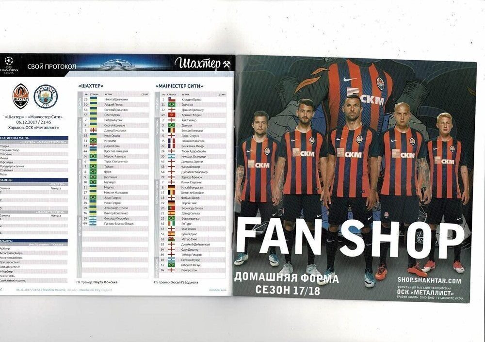 FC Shakhtar Donetsk v Manchester City Champions League Football Programme 2017/18