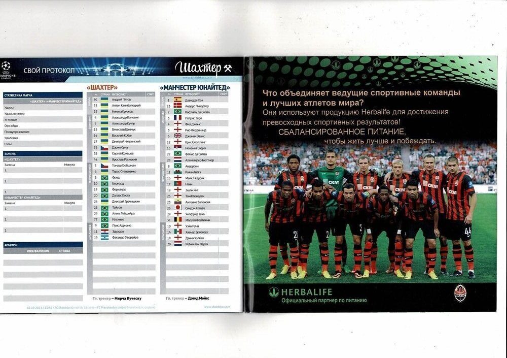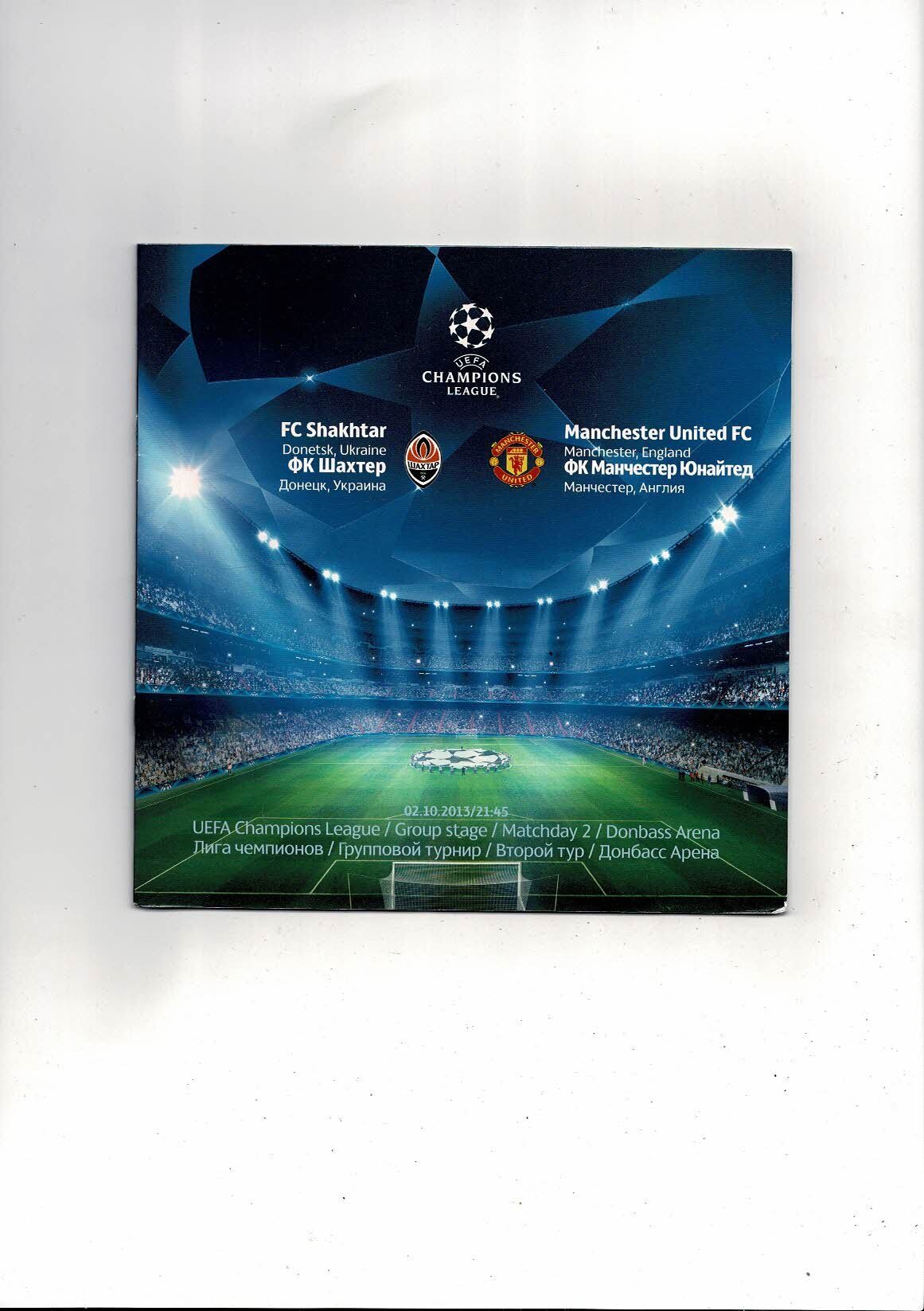 FC Shakhtar Donetsk v Manchester United Champions League Football Programme 2013/14